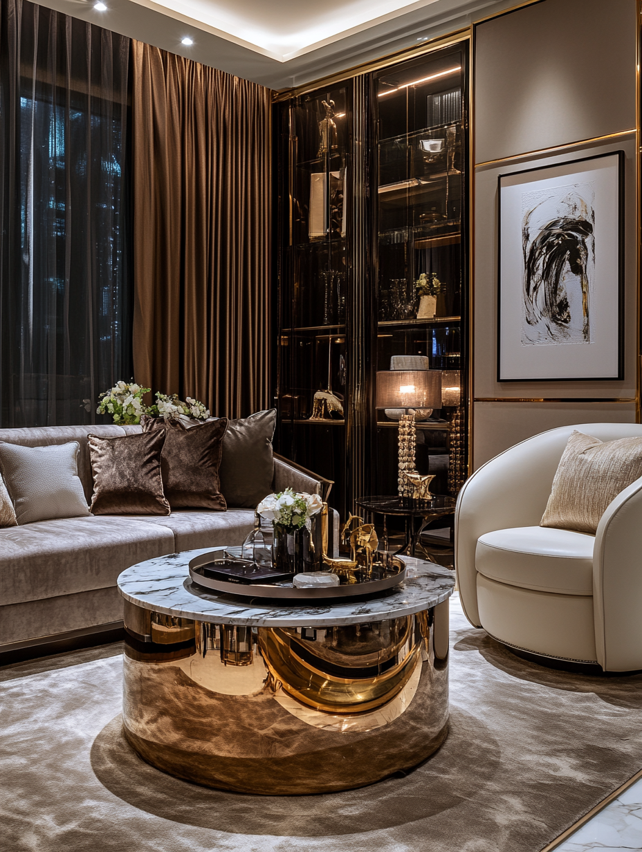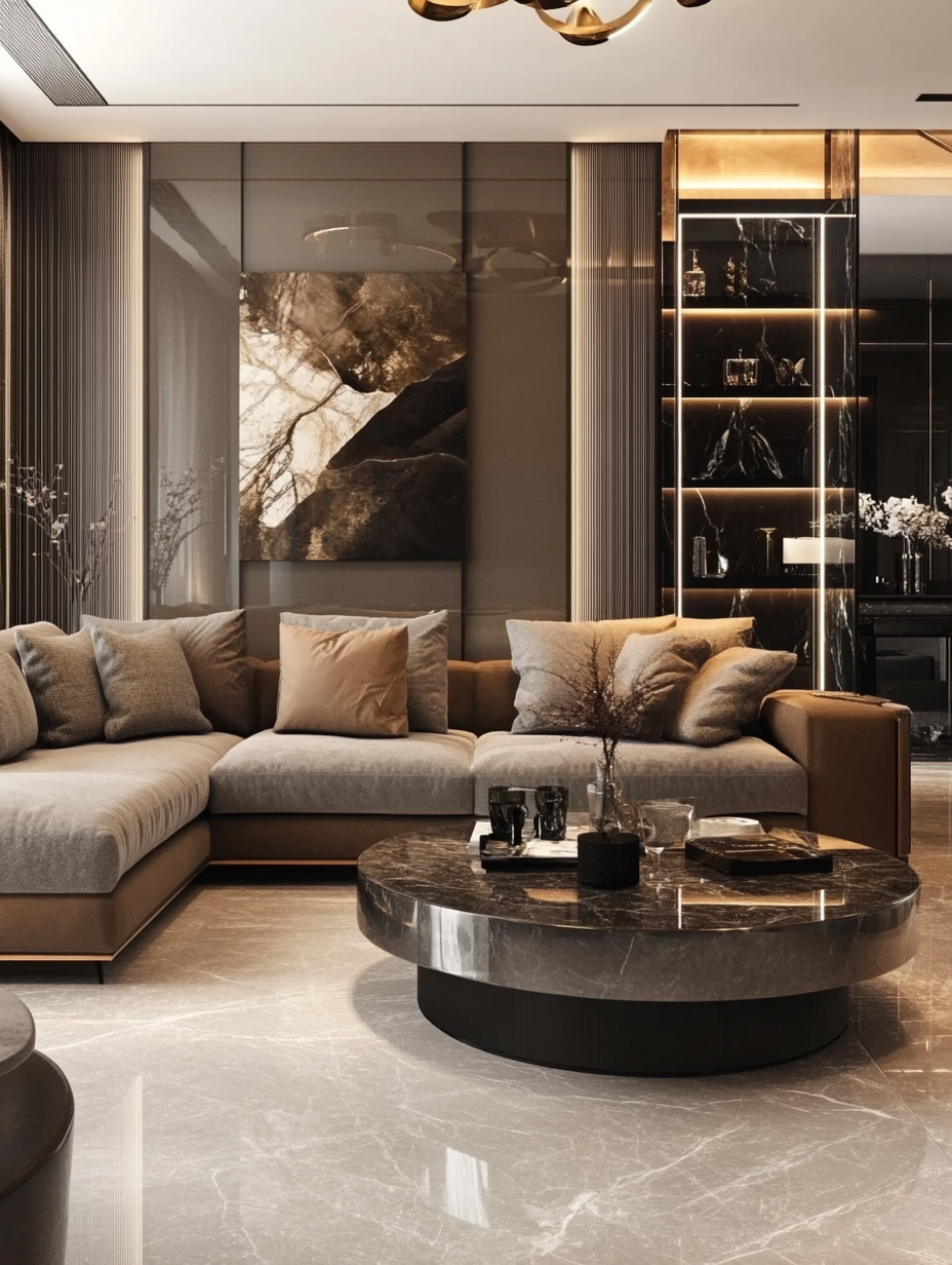 The living room gets to have a dignified and lavish flavor every time the luxury materials that cover are involved. It has lots of expensive materials like glass, marble, and metals, as well as fixtures and accessories as well. It is appropriate for those who want to have a place with a vibe of luxury and perfect crafting.