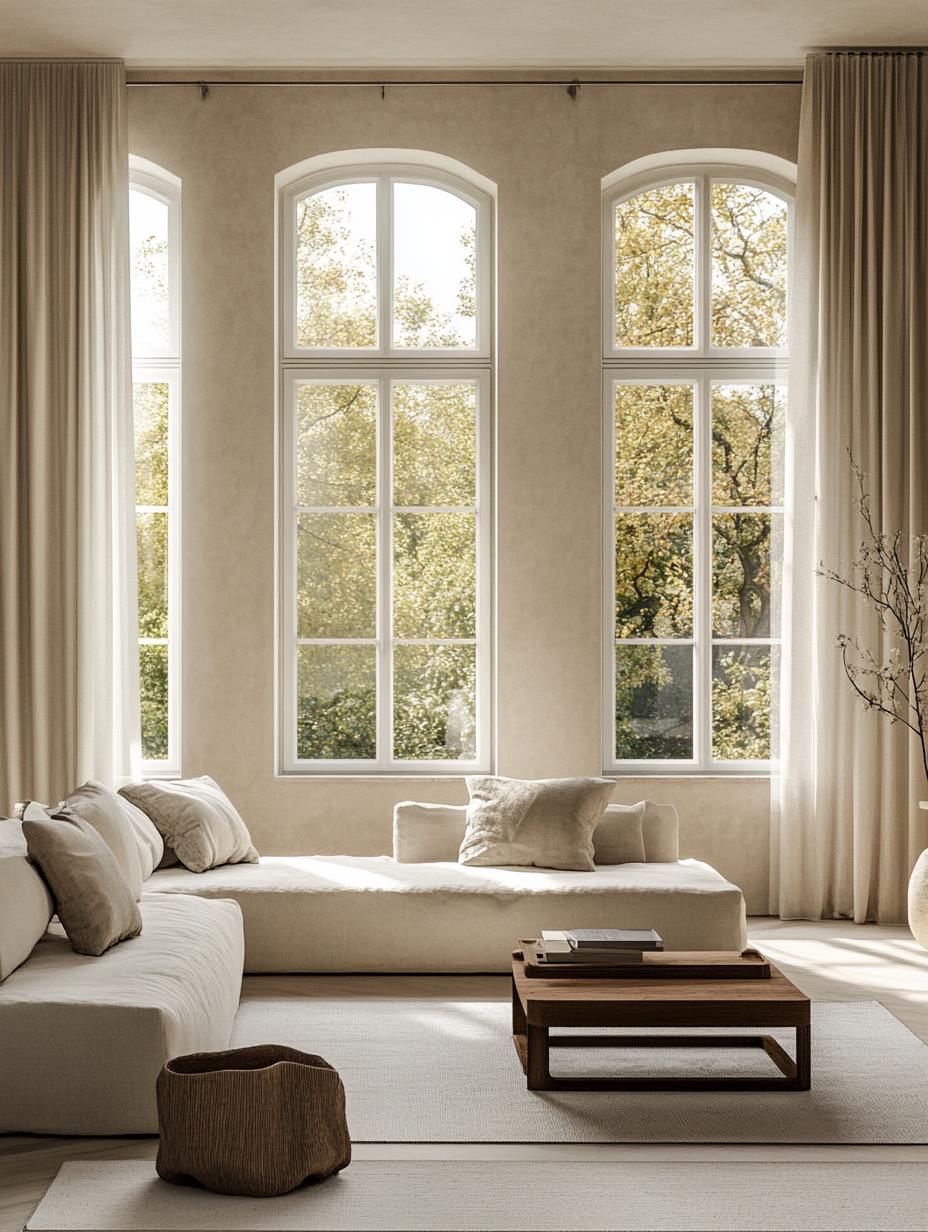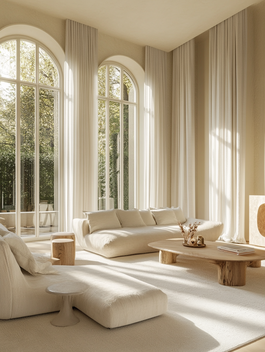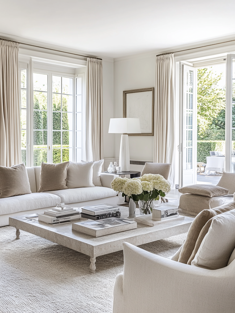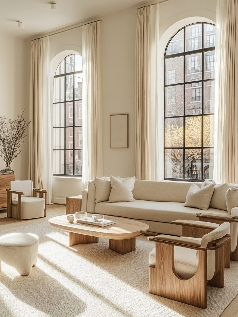 Light and airy living room interior design that gives priority to natural light, ample spaces, and a soft color range. This type of design generally comprises wide windows, light-colored walls, and minimum furniture to produce a sense of light and space. Most appropriate for those seeking a living room that appears to be neat and spacious with a main focus of sultriness plus minimalist design.