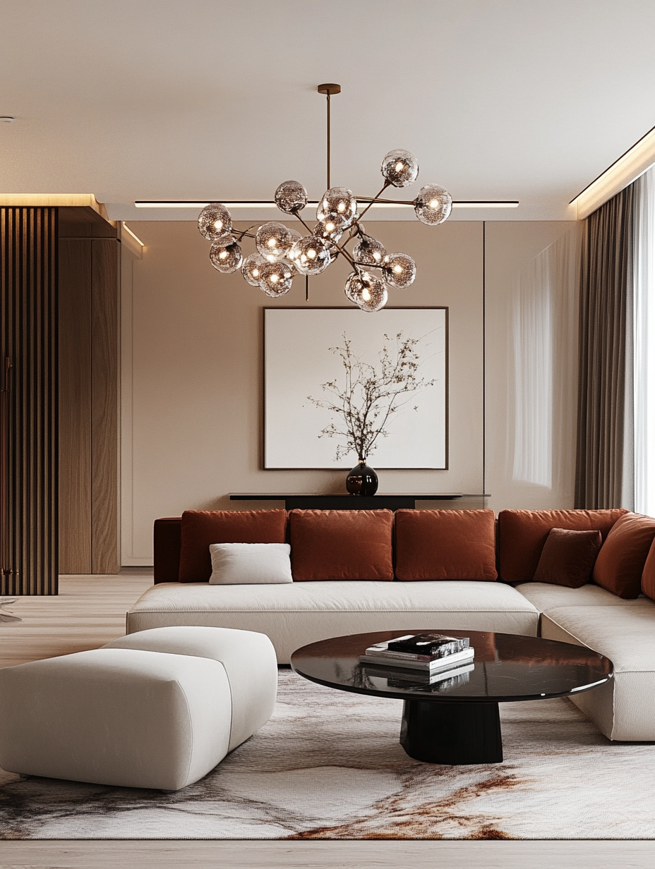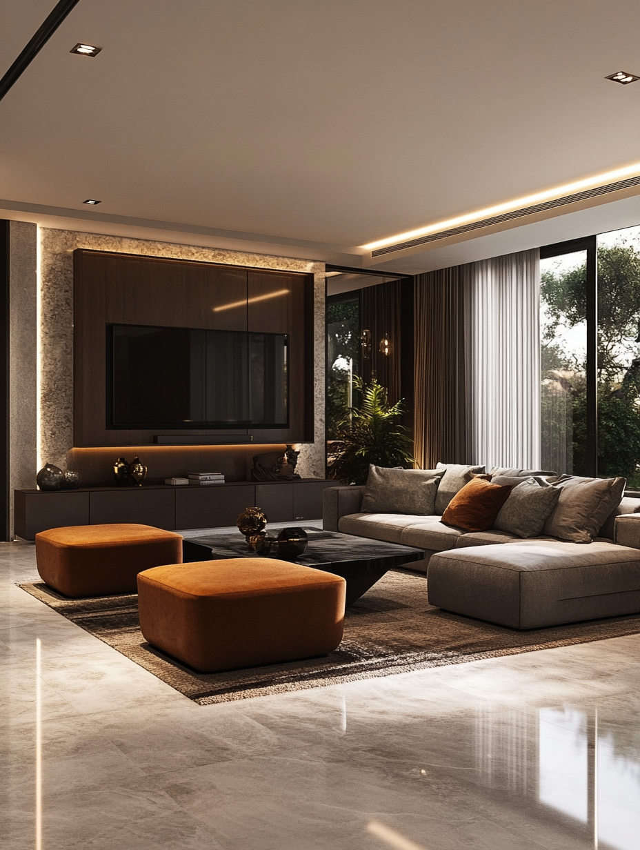 Modern luxury combines contemporary design with high-end materials and finishes, creating a space that feels both opulent and comfortable. This style often features luxurious furniture, elegant decor, and a sophisticated color palette. It’s perfect for those who want a living room that exudes sophistication and comfort.