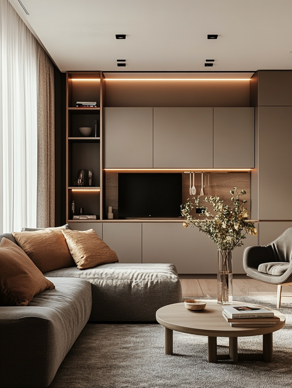 To establish a living room adorned with utility in thought makes sure this room is both pragmatic and chic. This mostly consists of multi-purpose furniture, skillful storage, and a plan that enlarges the room’s functionality. This is the best option for those who need a space that can meet their daily demands and, at the same time, it is very neat and modern.