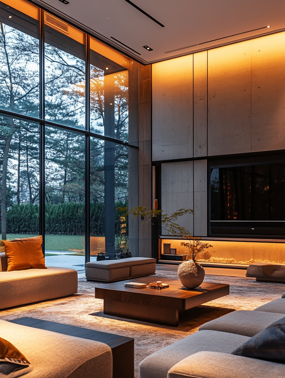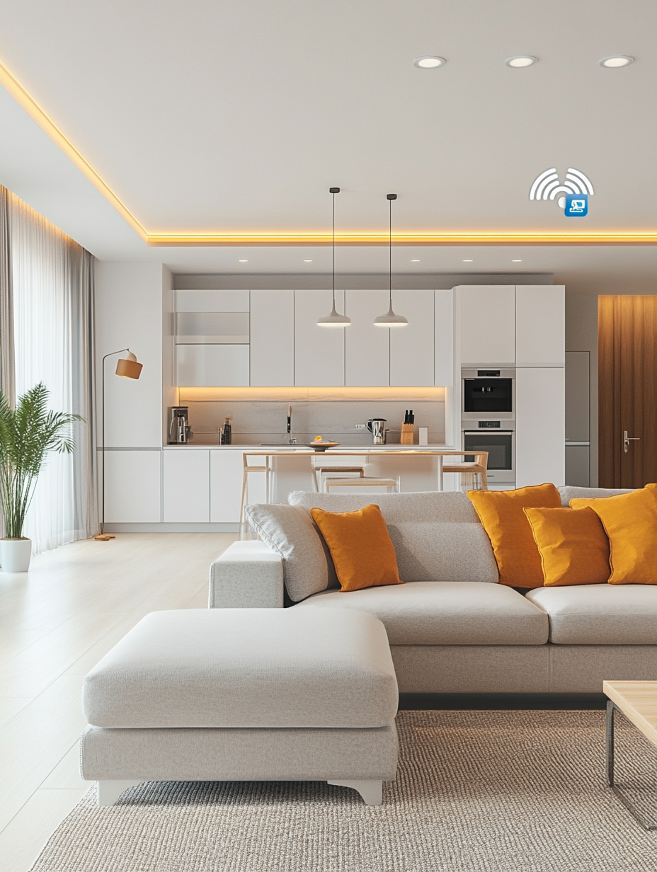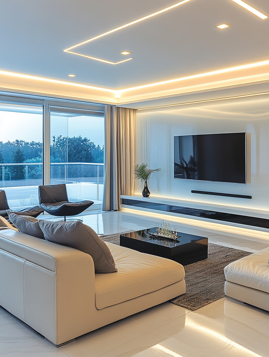Smart home characteristics when utilized in the living room guarantee s it comfort and efficiency. This interior design theme is characterized by smart technology such as smart lighting, voice-activated assistants, and automated climate control. This hip and innovative way of including high-tech with present design is to create a family room that is future-oriented as well as involves modern comfort.