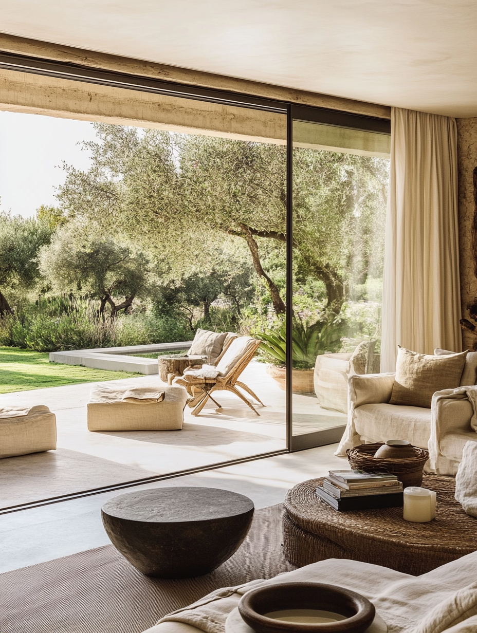 An indoor-outdoor flow can be achieved by designing your living room in a way that has a great connection with outdoor spaces, like the courtyard or garden outside the house. The design looks very clean and easy when you mix huge glass doors, outdoor furniture, and green planting. For individuals who love the idea of being around nature while indoors, bringing the outside inside the home is paradise.
