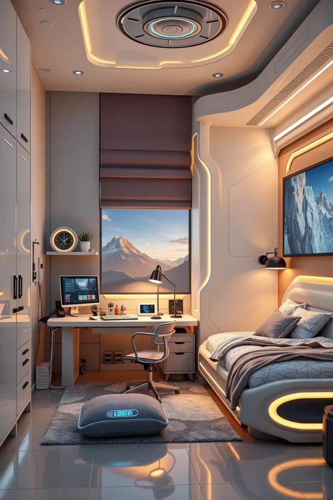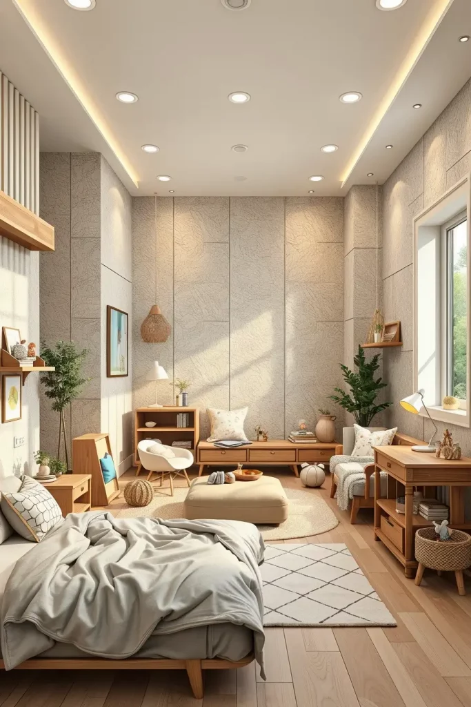When choosing furniture and decor, I pay attention to the multi-functional nature of the item, such as a platform bed with concealed storage, an extensive desk that can have 2 or more monitors, and adjustable shelves that can be moved around. Soft seating in the form of a comfortable reading nook or lounge is also needed. Framed artwork, textured rugs and wall panels are used to supplement the aesthetics but retain the environment sophisticated yet friendly. I add blackout curtains or intelligent blinds to help me control sleeping habits, which is becoming a trend with the experts of youth wellness.
