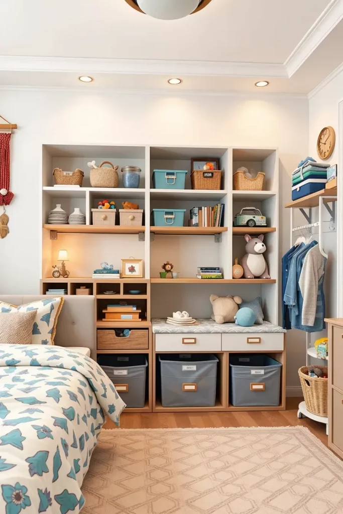 I tend to use in-built shelves, drawers under the bed, labeled bins, cubbies placed on the walls and multifunctional furniture such as benches with storage areas. These storage pieces can be used to keep things organized and there is no need to sacrifice on style. I also favour open shelves of frequently used objects, which makes quick accessibility of the kids to their things and easy placement of the objects in their place.