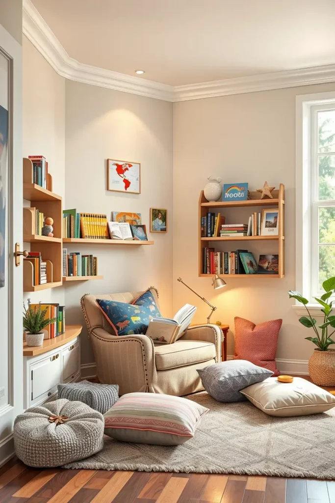 A few pieces of furniture to make up the ideal reading nook are a soft armchair or floor cushions, a small book shelf, warm lighting and textiles such as knitted throws or plush carpets. It is aimed at ensuring that the area is comfortable and welcoming and at the same time, it should be well-organized and functional. The use of decorative items such as bookshelves mounted on the walls or the use of quaint art helps in the awakening of curiosity.
