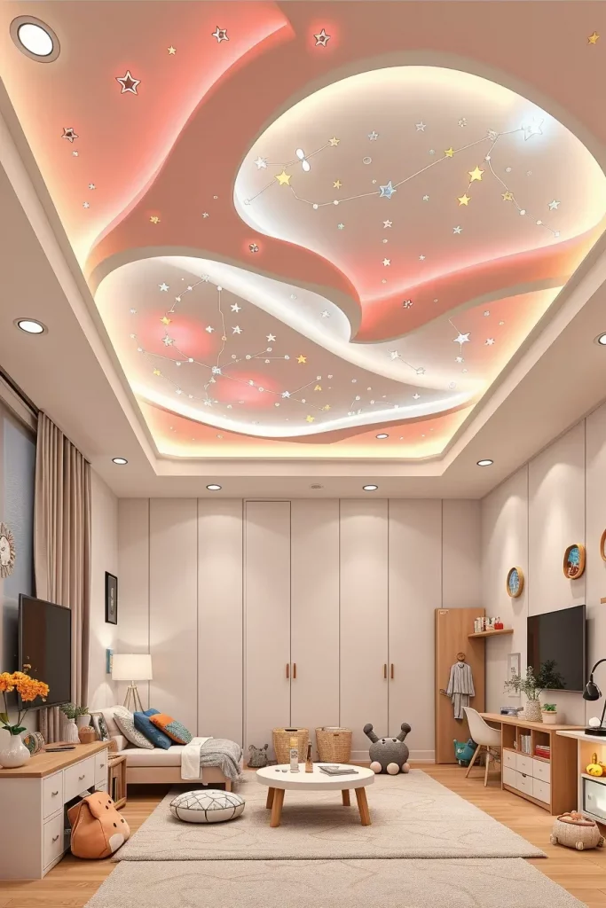 I would also want to work with materials that are durable such as lightweight panels or acoustic tiles that not only appear interesting but they also have the benefit of reducing the noise. In case of themed rooms, I have used cutouts of clouds, soft pastel gradient lighting and integrated recessed lighting to provide the dreamy effect. The right ceiling type will be able to seam the rest of the room together in a significant way than one would think.