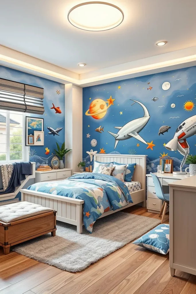 Practically, I am interested in choosing the furniture that is appropriate to the theme but does not restrict the changes in the future. As an example, a neutral bed frame will match a space-themed room, as well as a teen makeover in the future. The theme is well implemented in accent pieces such as rugs, wall art, and bedding and does not need a complete renovation in the future.