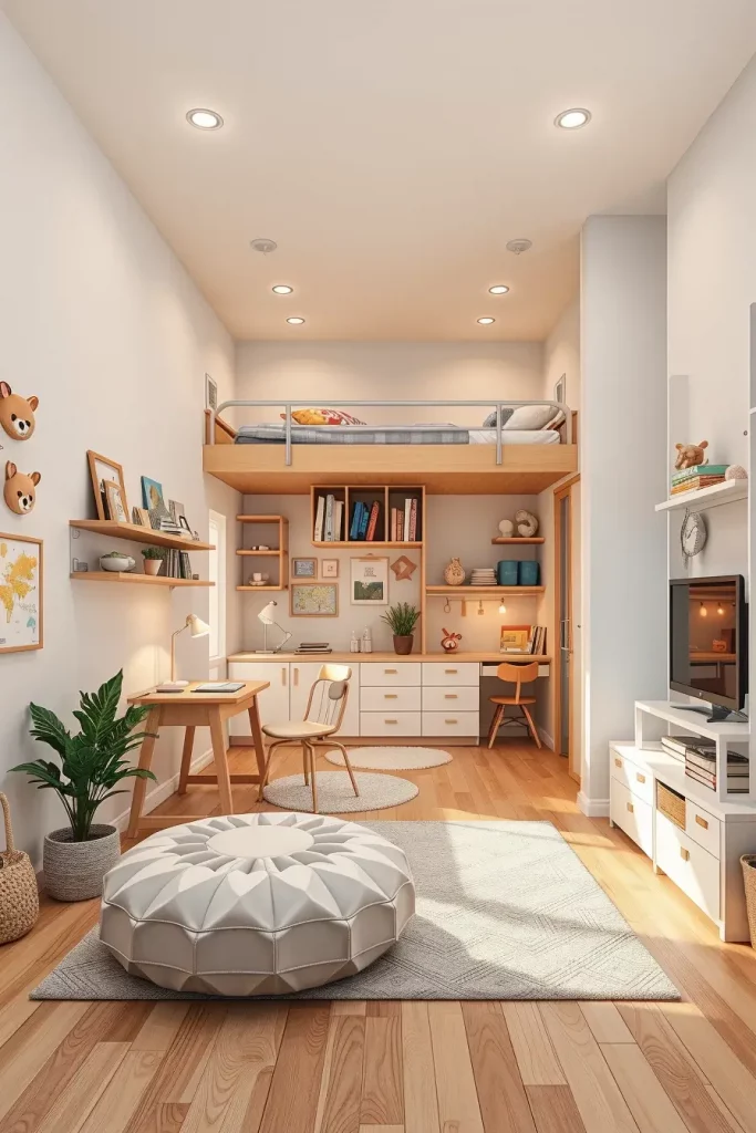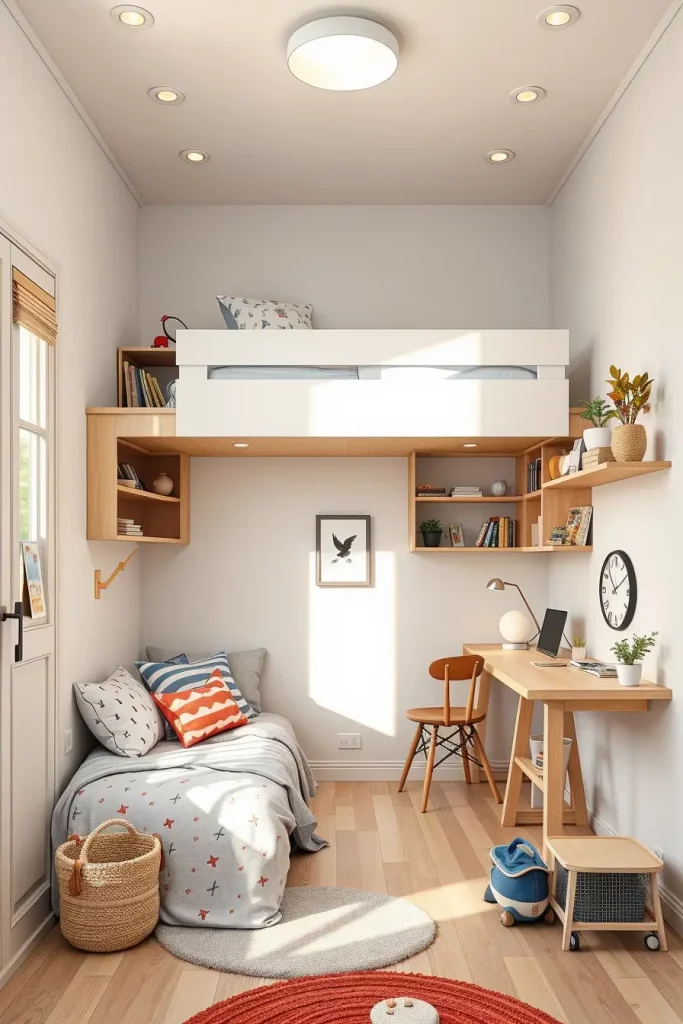 I usually include such details as compact loft beds, storage that is mounted on walls, or extendable desks to use every inch of a room. Such items enable the layout to be easily changed as the child grows up. Safety is enhanced by ensuring that there are open pathways, and the longevity of the design is done through the use of flexible furniture. Light material and the use of rounded corners and soft colors make the environment warm and welcoming.