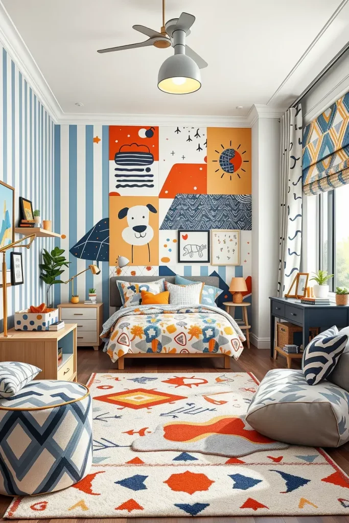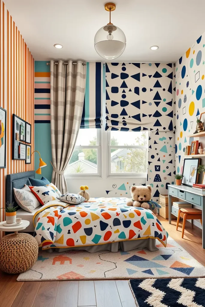 Bold designs are a growing trend in 2026 kids rooms and I personally like incorporating them to bring energy and movement in a room. The combination of stripes, geometrical shapes, and playful prints can make the room dynamic and modern. The trick is to strike the right balance between these patterns so as to create a room that is aesthetically balanced instead of being overwhelming to the eye.