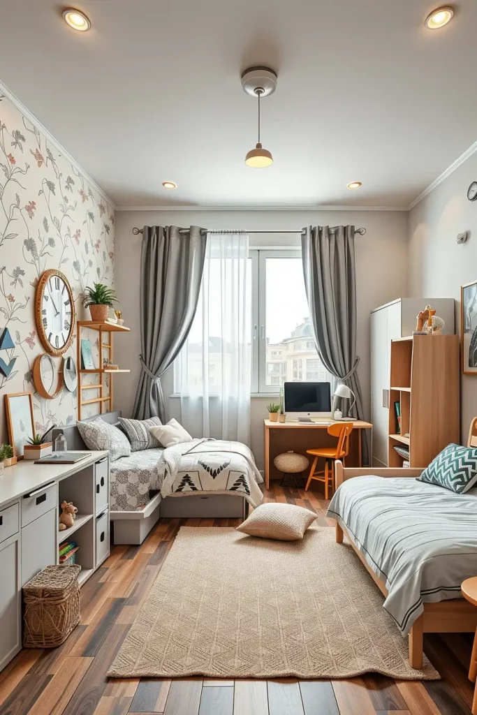 I always incorporate convertible furniture, including fold-out desks and storage stackers, which are not costly but very useful. A bed frame can be repainted, temporary wall decals can be added or the bedding changed to newer textiles which are easy tasks to perform and go a long way in changing the appearance of the room. Neutral or soft color palette is also another suggestion that I can make because it does not need as many decorative accessories in order to appear classy and well-done. The design is finished with area rugs, LED strip lights and cheap yet fashionable curtains without breaking the bank.