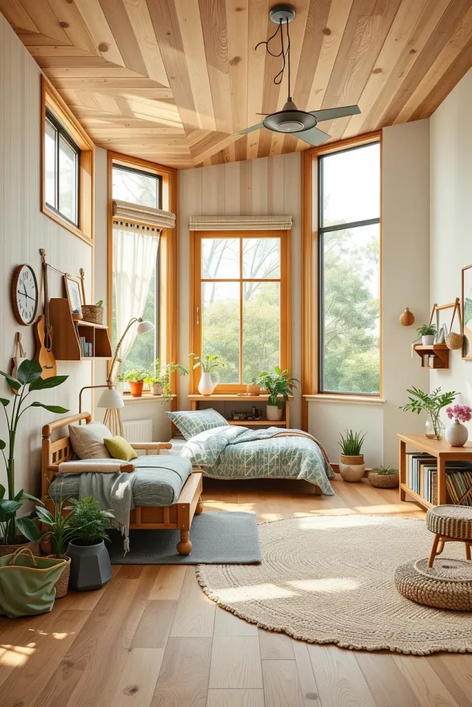 I tend to use the earthly colors, soft gray, natural wood materials, and fun patterns that do not promote any particular gender. The rounded beds, minimalistic desks, and open shelving systems are furniture that are used to achieve a clean and harmonious appearance. The design is fully done with the addition of decorative features such as abstract prints, textured carpets, and neutral bedding without making any commitment to a theme.
