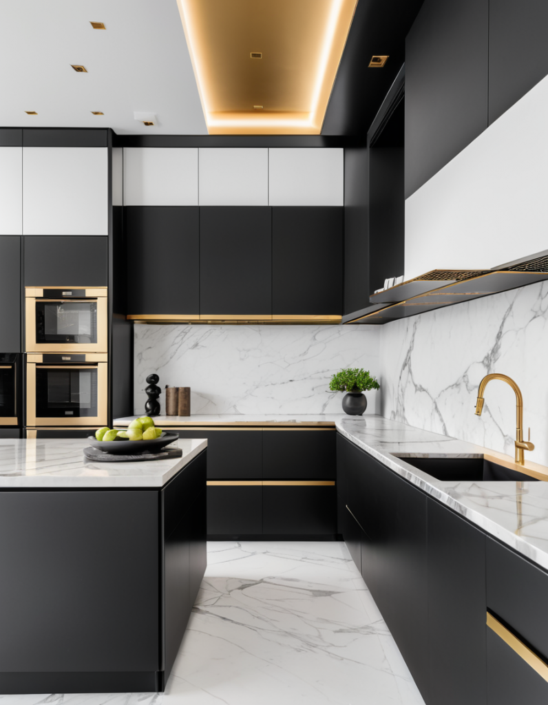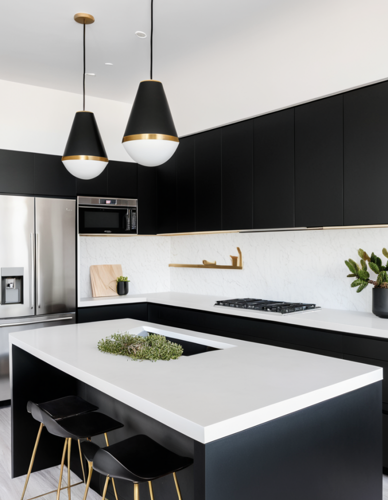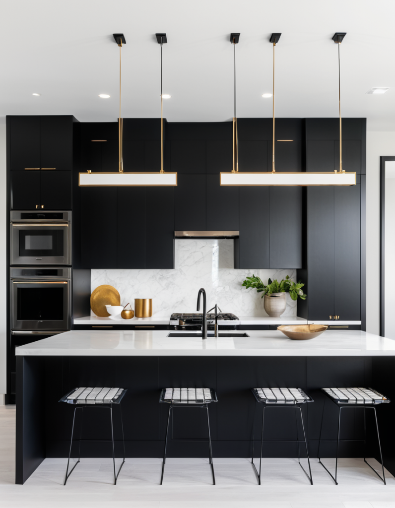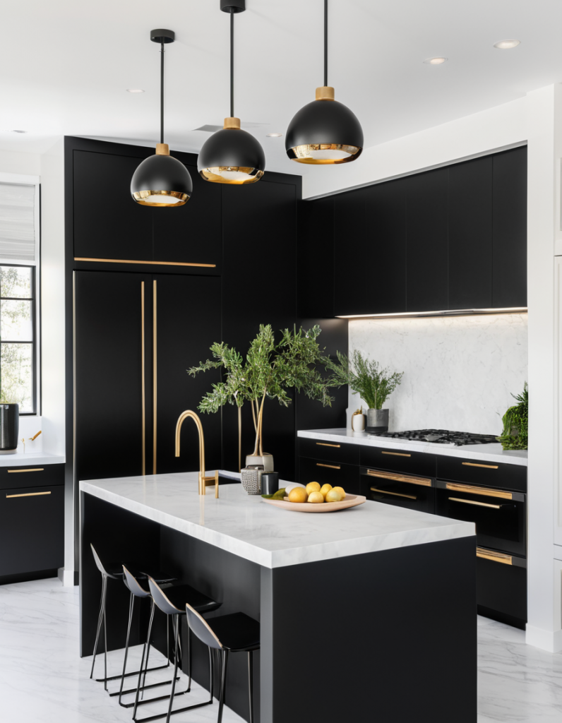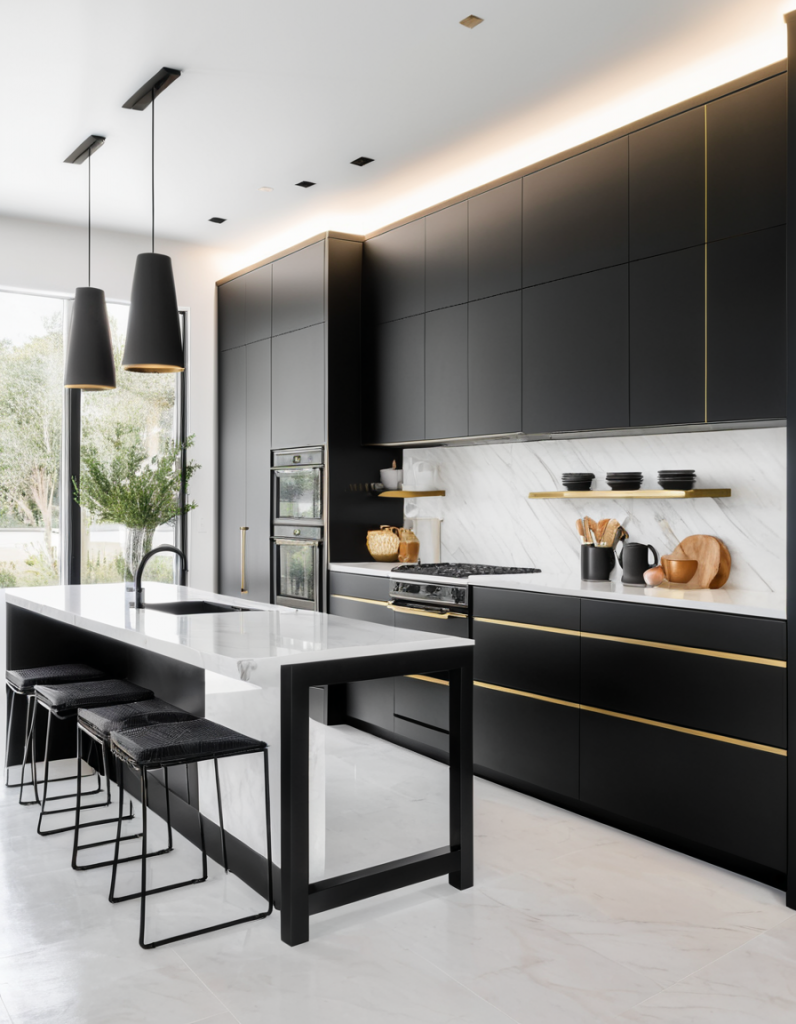 Although we can say that black and white kitchen designs still currently trend in 2025, their main side refers to their elegance structured by their creative compositions of contrasting, bold, high-contrast shades. A common theme may consist of the black cabinetry that is opposed to the white countertops or vice versa, which, in turn, creates a bold visual impression. These kitchens often have matte surfaces, metallic accents, and thin appliances that pull together the whole modern feel. Black and white kitchens are quite simple in their design and that is the reason why other levers of creative freedom are given to accessories like statement lighting or backsplashes.