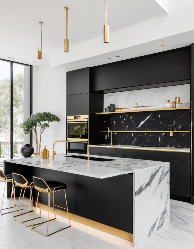 The emphasis of modern luxury kitchens in 2025 is on clean lines, premium materials, and smart technology. How about minimalistic layouts with those appliances that are integrated, marble countertops, and customized cabinetry in matte finishes? The look of the combination of black and white with gold or brass metals brings forth a timeless and sleek setting. These designs are not just about looks, but also about functionality, with storage that is hidden and controls that are intuitive.
