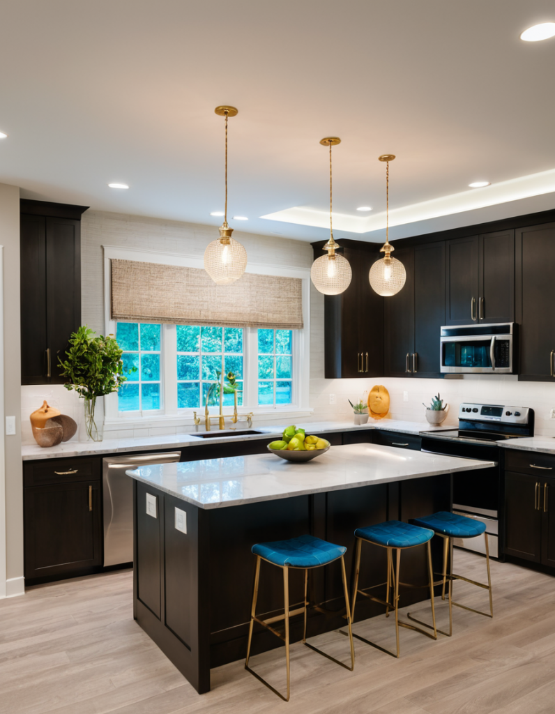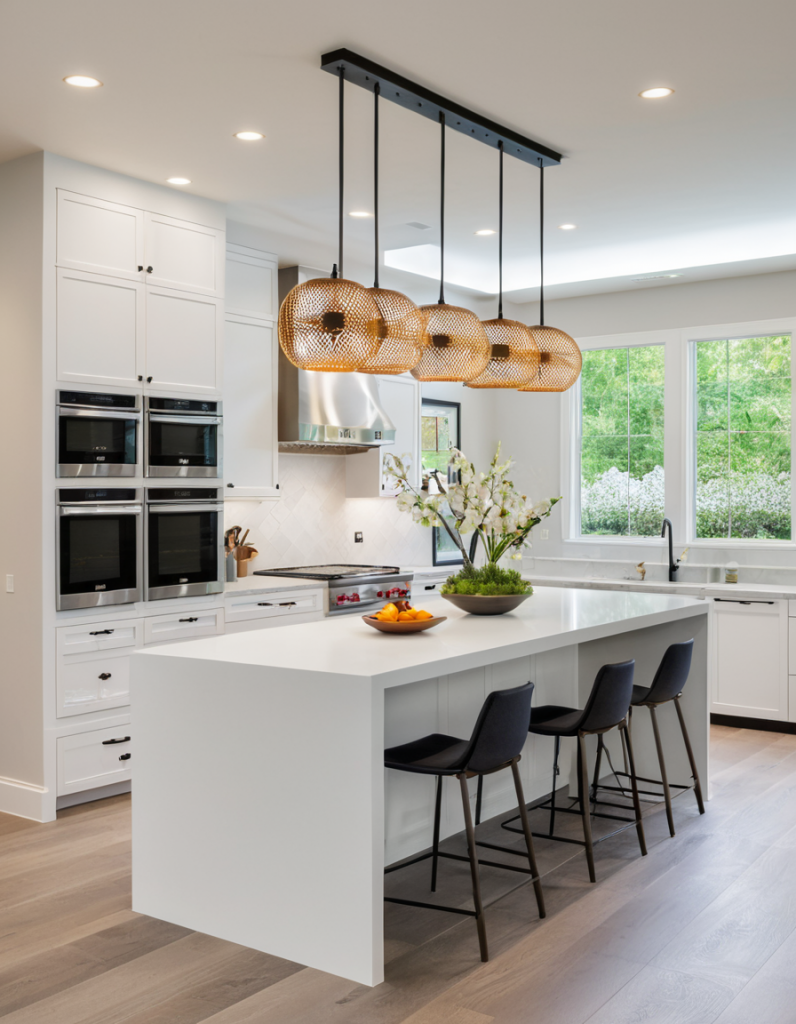 It has to be noted that lighting is a crucial design element and this year, everything gravitates towards statement lighting. High scale pendant lights, geometric chandeliers, or the minimalist recessed lighting, these things can be the kitchen’s light bulbs as well as the eye’s focus. The choice of a bold light can be upgrading to the whole aesthetic of the place turning even a small kitchen into a grand palace. Pendant lights placed above a kitchen island, for example, bring about comfort and adequate lighting necessary for the cooking and dining areas.