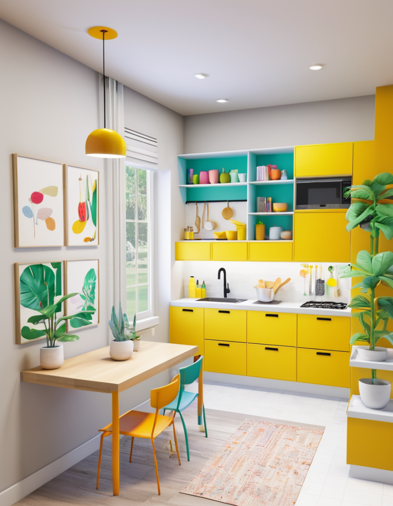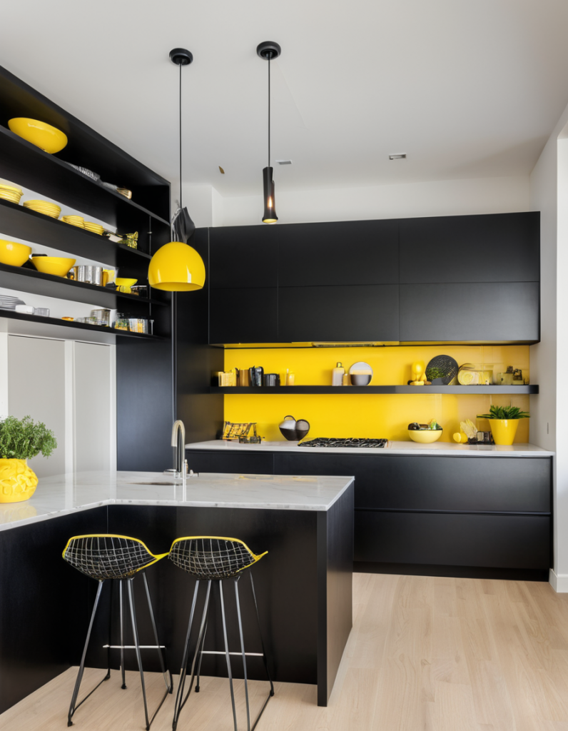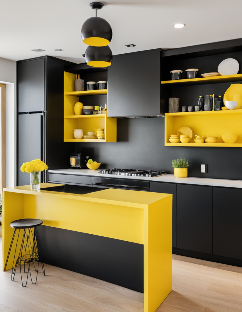 When it comes to the kitchen decoration, the combination of yellow and black is a hit in 2025. The color yellow, black, and the cabinetry are perfectly combined in open shelving style which all together make the kitchen bright and airy. Open shelves bring you the opportunity to show off the designer rice dish or the decorator items by these the kitchen becomes dignified. Clashing bright yellow with open shelving and the black cabinet is a modern yet bold and lively touch. Pair open shelving was making the whole setup more exclusive.