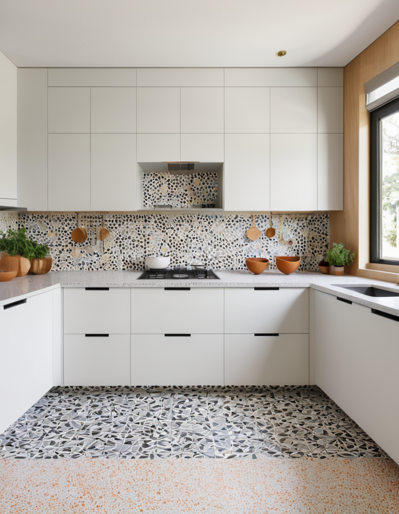 By 2025, statement flooring is expected to become the essential part of today’s kitchens. Bold patterns, geometric designs, and modern materials like terrazzo, herringbone tiles, or patterned wood display kitchens uniqueness. In addition to its standout feature the flooring is a good accompaniment to neutral walls or simple style cabinetry both for small and large featuring design trends. This trend works well in both small and large kitchens, adding visual interest without overwhelming the space.