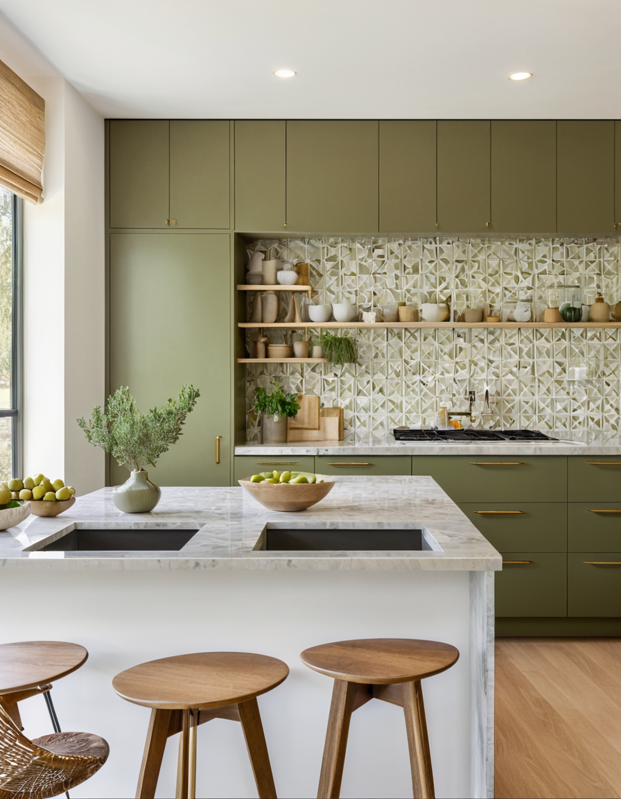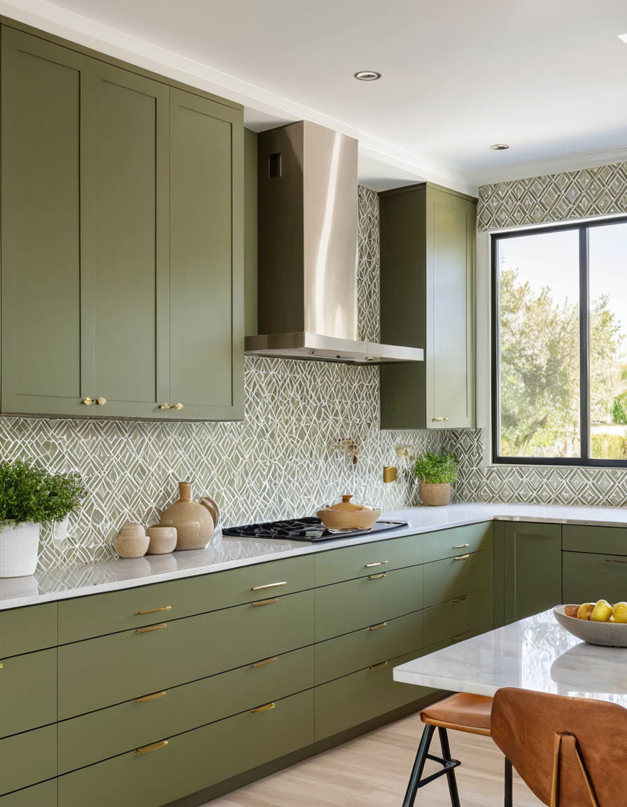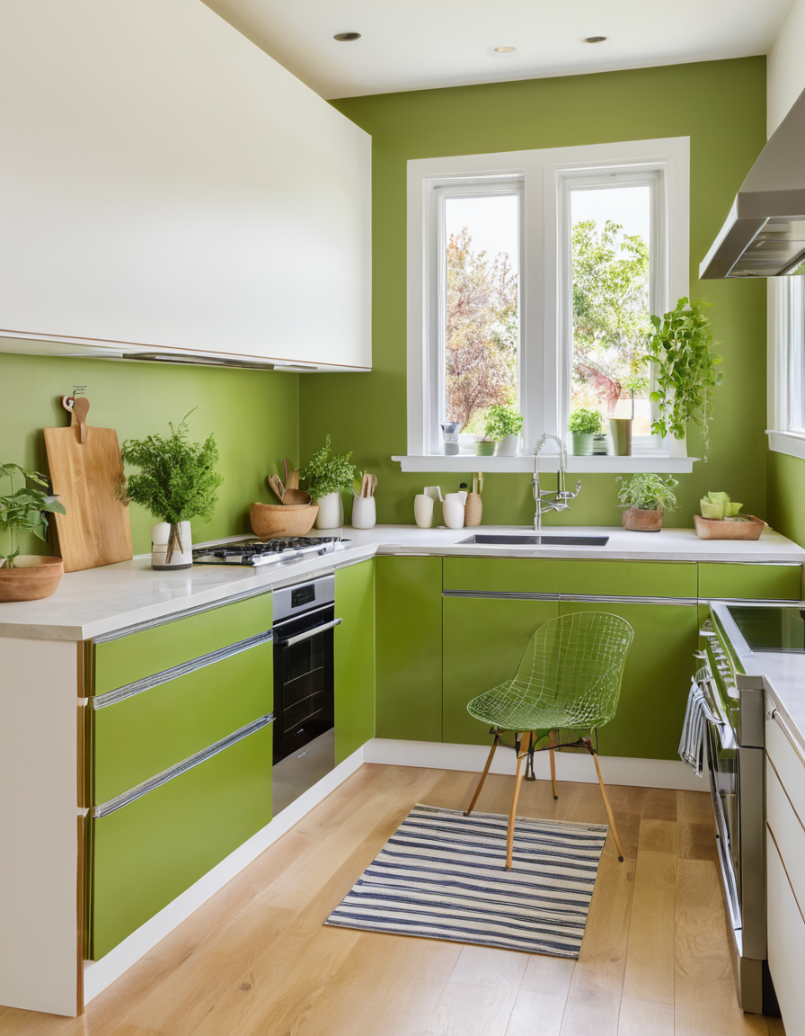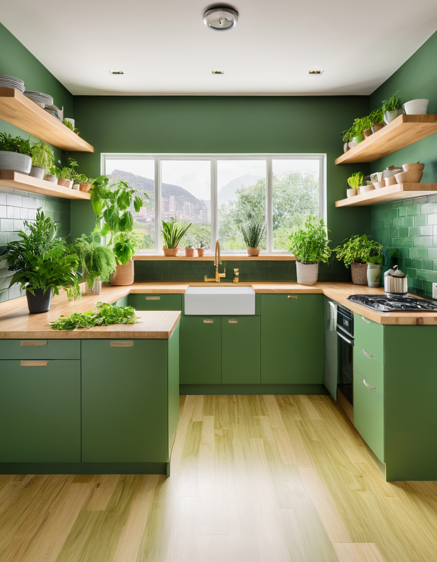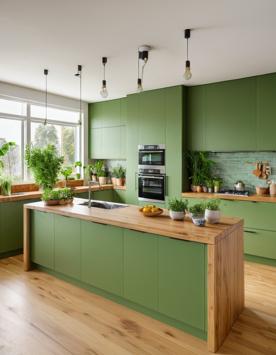 The green kitchen interiors are closely related to sustainable solutions, and the idea of using eco-friendly materials is the most prominent of all in the clothing. The kind of green materials, for example, bamboo, that would be viable to be used for this purpose, are the ones we should think of. Also, you might contemplate such issues as plants or herbs that were scattered throughout the room to emphasize the natural environment so much needed in the space. A palette of colors with various degrees of green will definitely be essential when it comes to delivering a green and restful kitchen atmosphere.