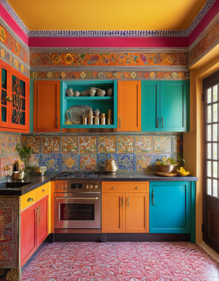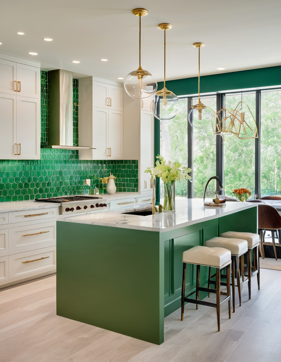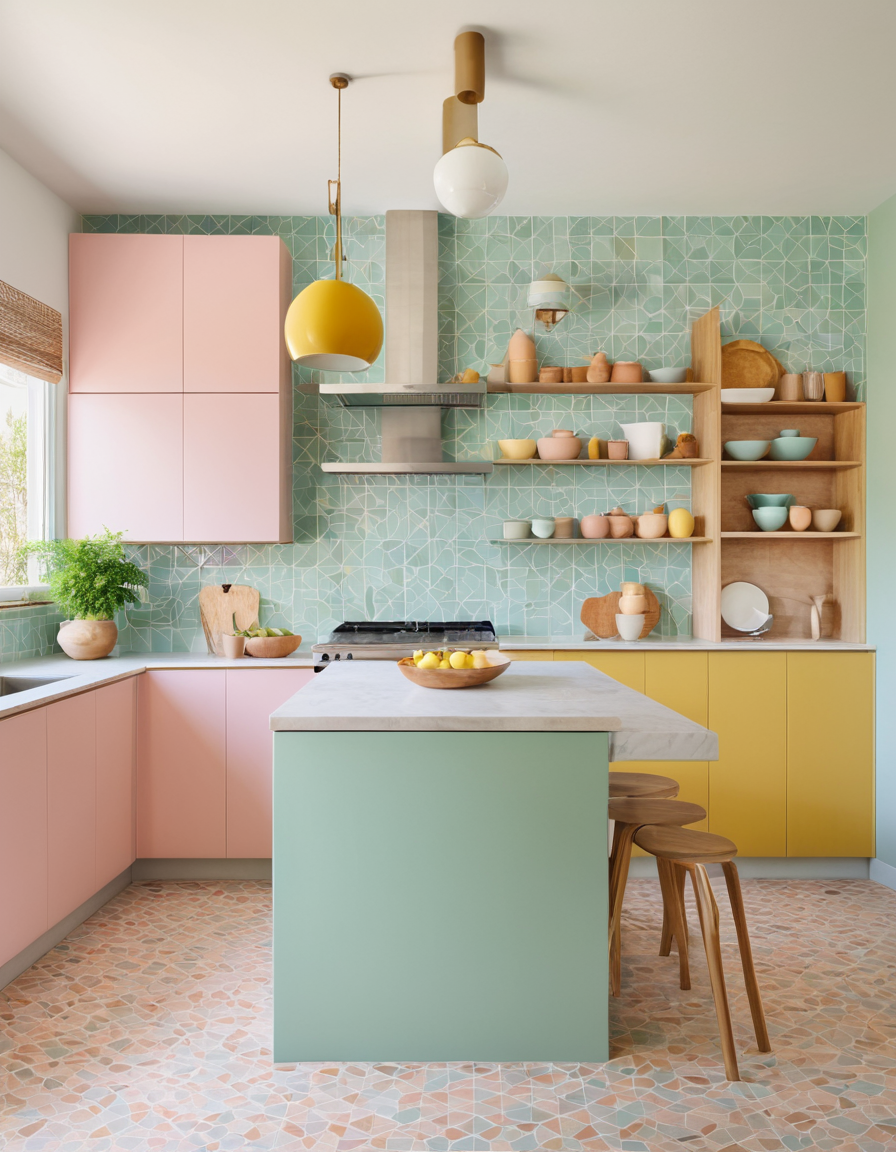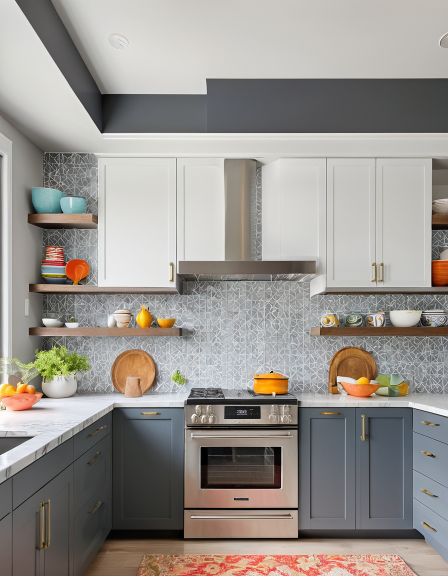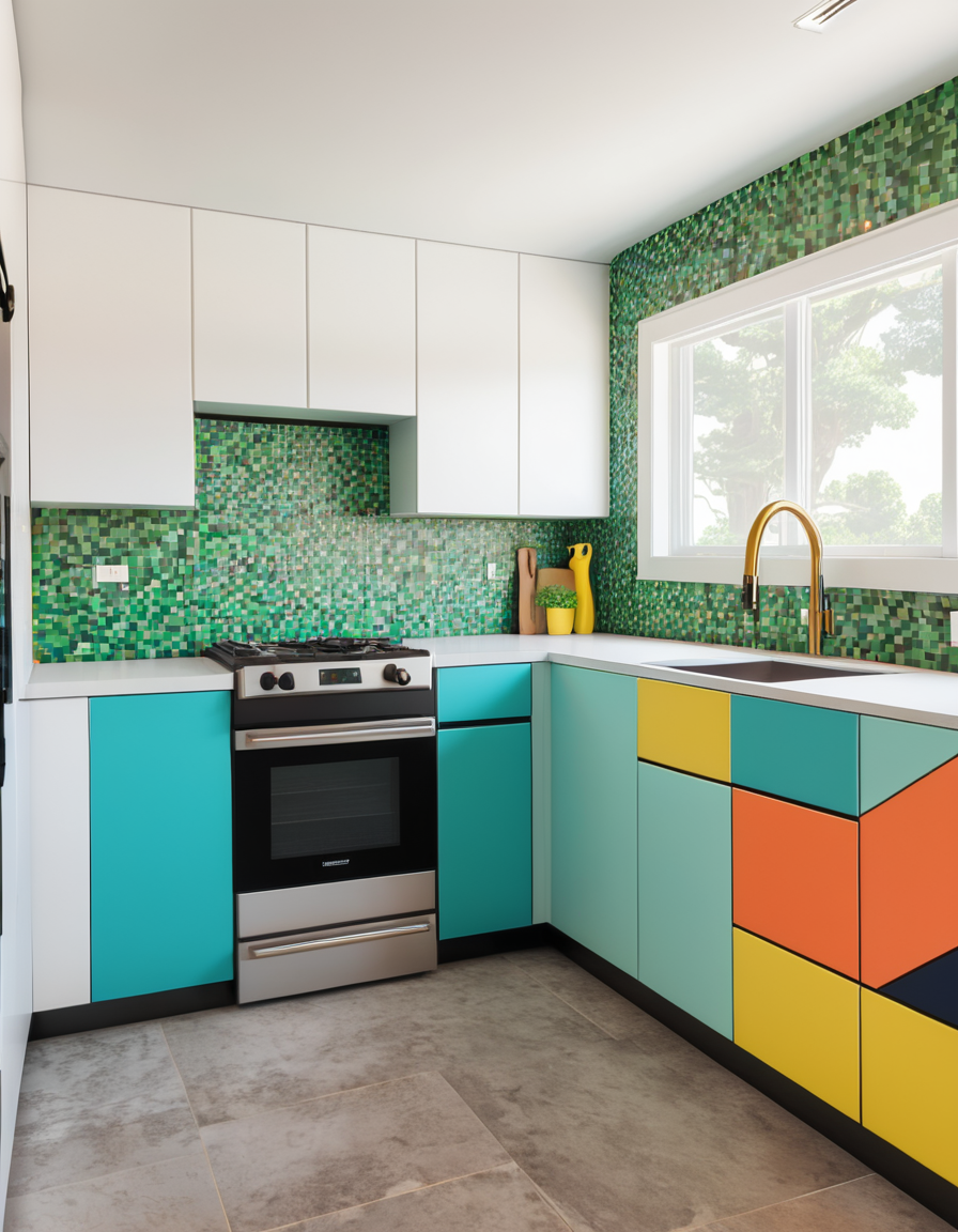 Vibrant color range when unexplored gives kitchens an upbeat and energetic vibe. Bold colors like deep blues, vibrant greens or rich oranges can be the visual center of attention. You can style these colors with rather uninvolved, geometric or modern looks to counterbalance the bright shades. The color palette can be used in cabinetry, backsplashes, or accessories to give a personal and lively vibe to the kitchen.