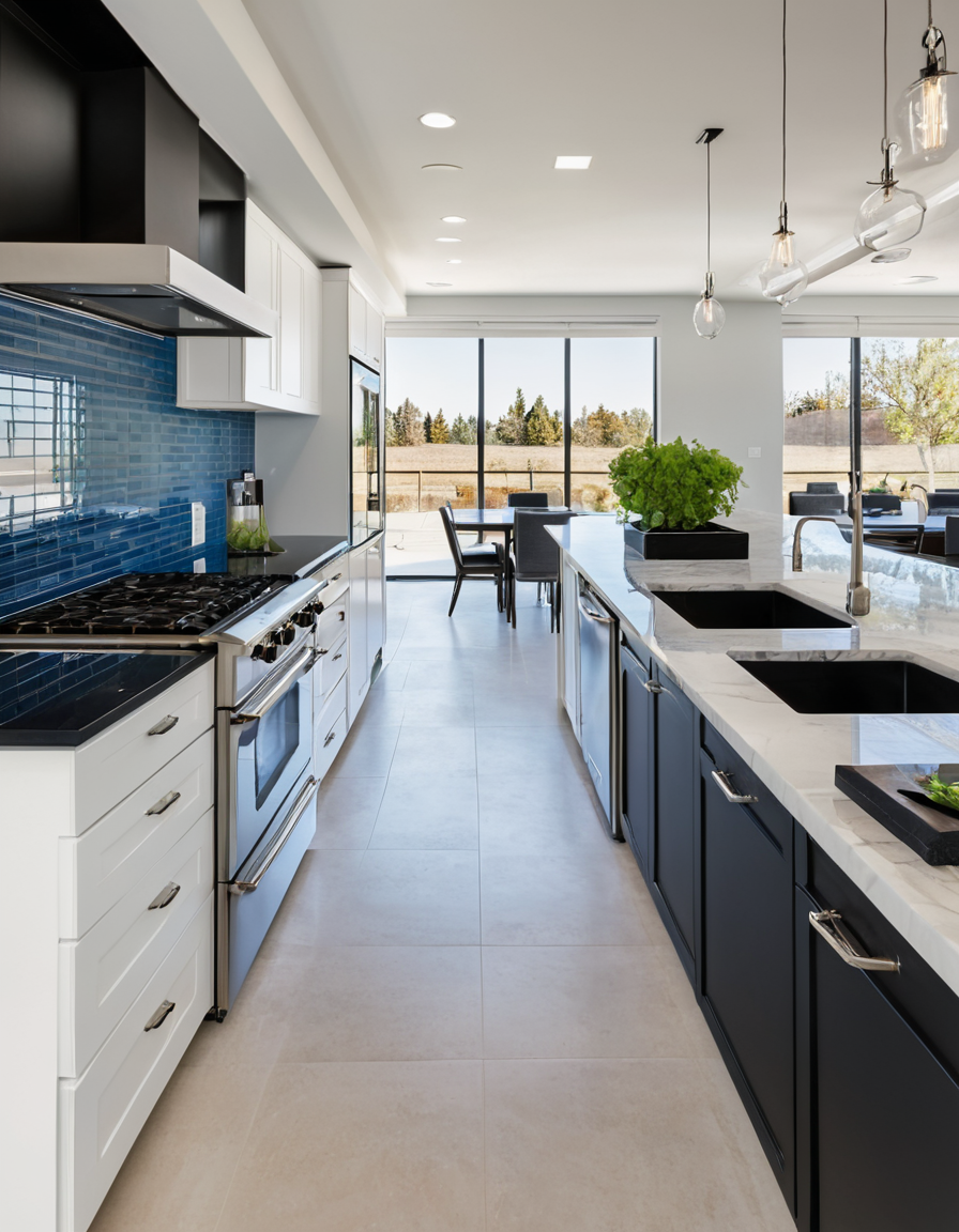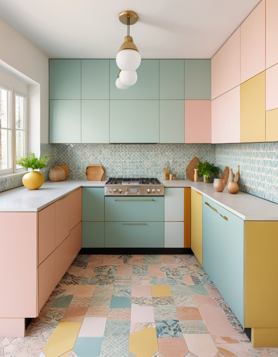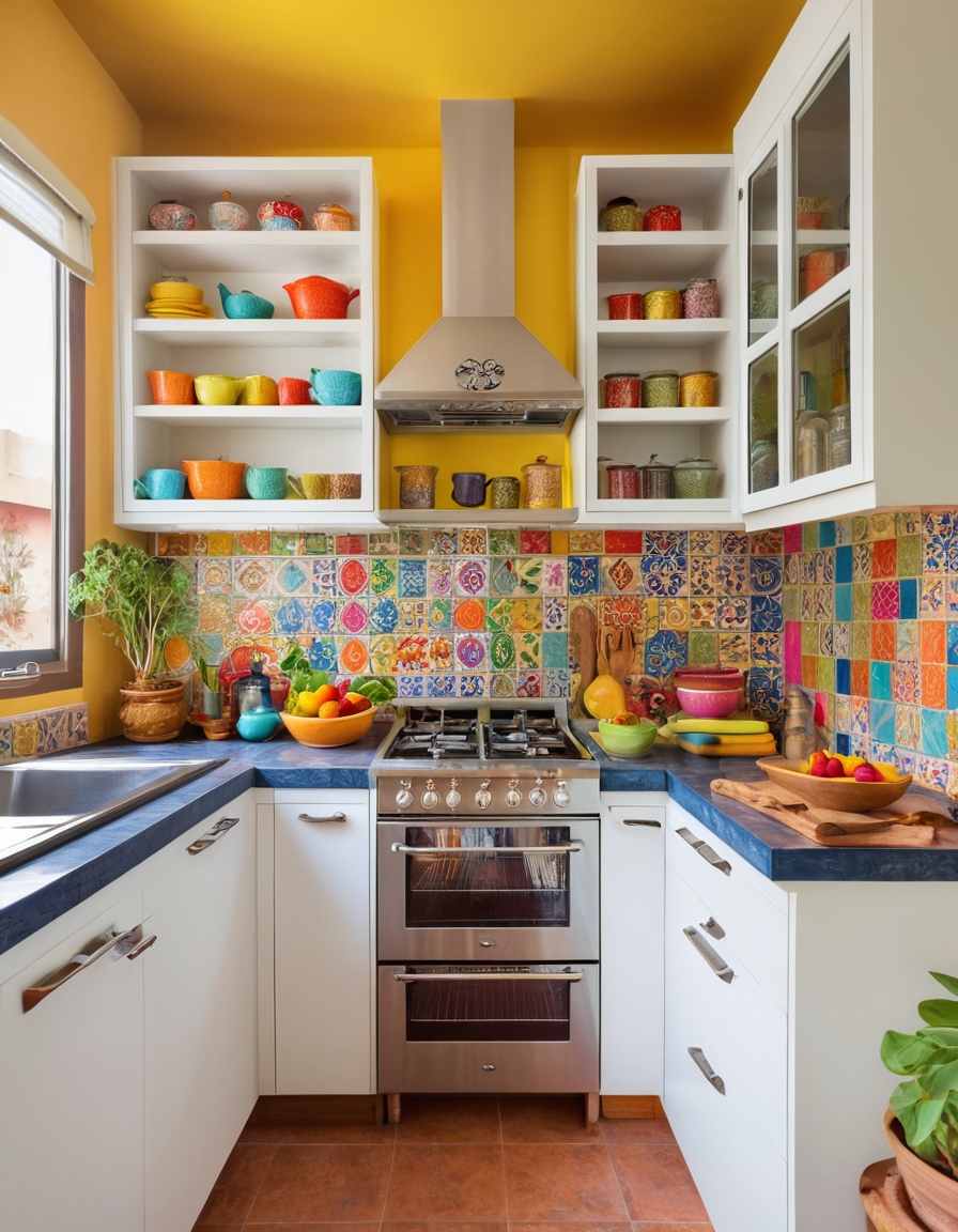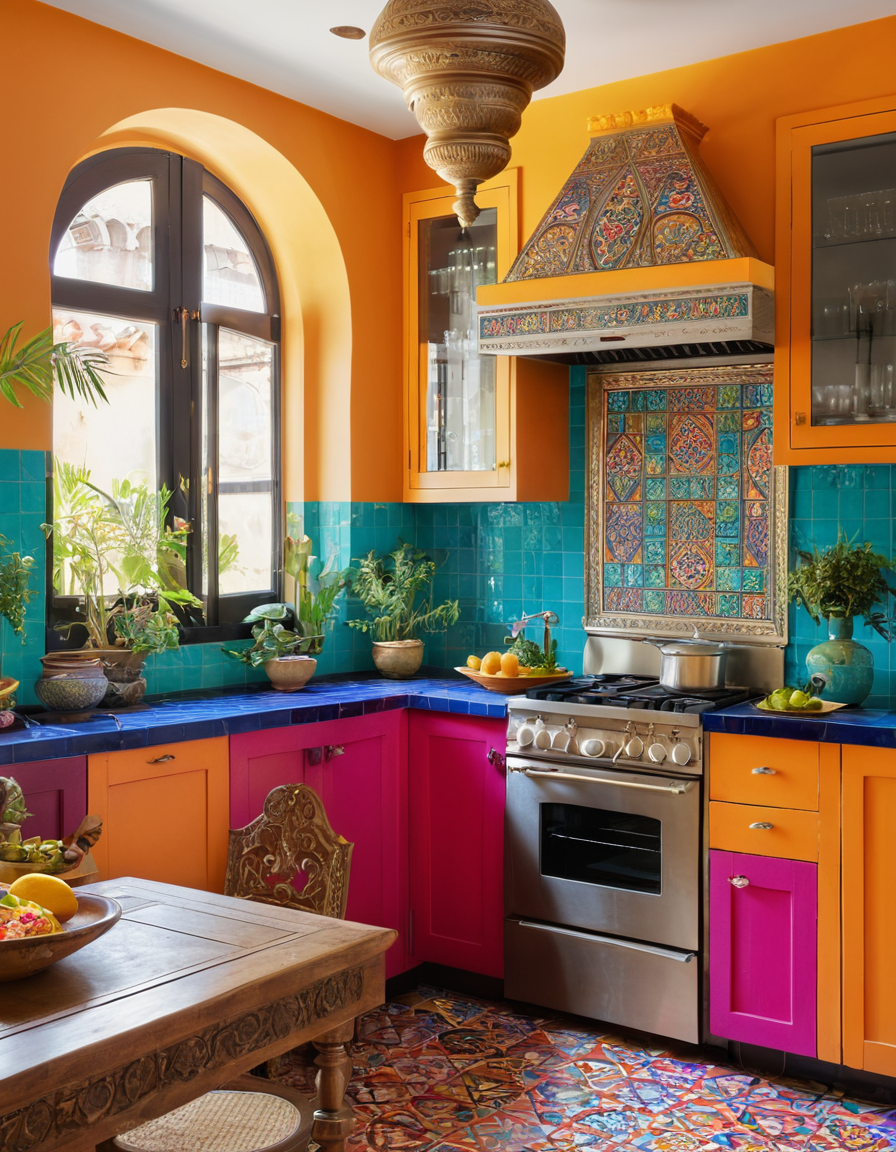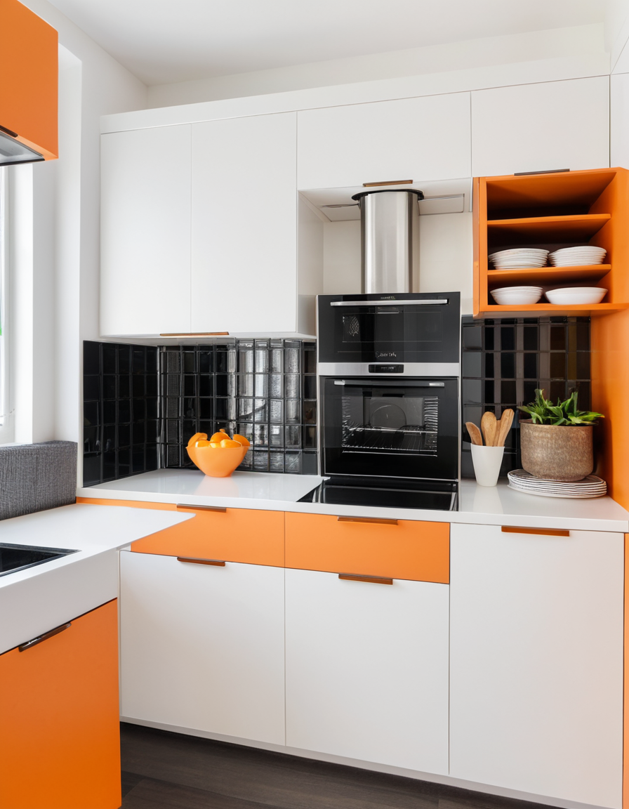 Vibrant color range when unexplored gives kitchens an upbeat and energetic vibe. Bold colors like deep blues, vibrant greens or rich oranges can be the visual center of attention. You can style these colors with rather uninvolved, geometric or modern looks to counterbalance the bright shades. The color palette can be used in cabinetry, backsplashes, or accessories to give a personal and lively vibe to the kitchen.