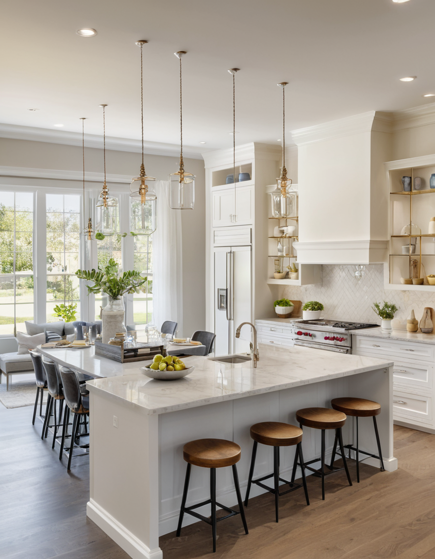 Open kitchen layouts work best if you prefer to create a breezy homely effect. By dismantling the walls between the kitchen and living areas, one can experience a single connected space that is perfect for socializing. Simplistic decors along with the minimal furniture should be the prevailing themes throughout the open setting. Healthy green houseplants can contribute to the liveliness and be an important element in the area.