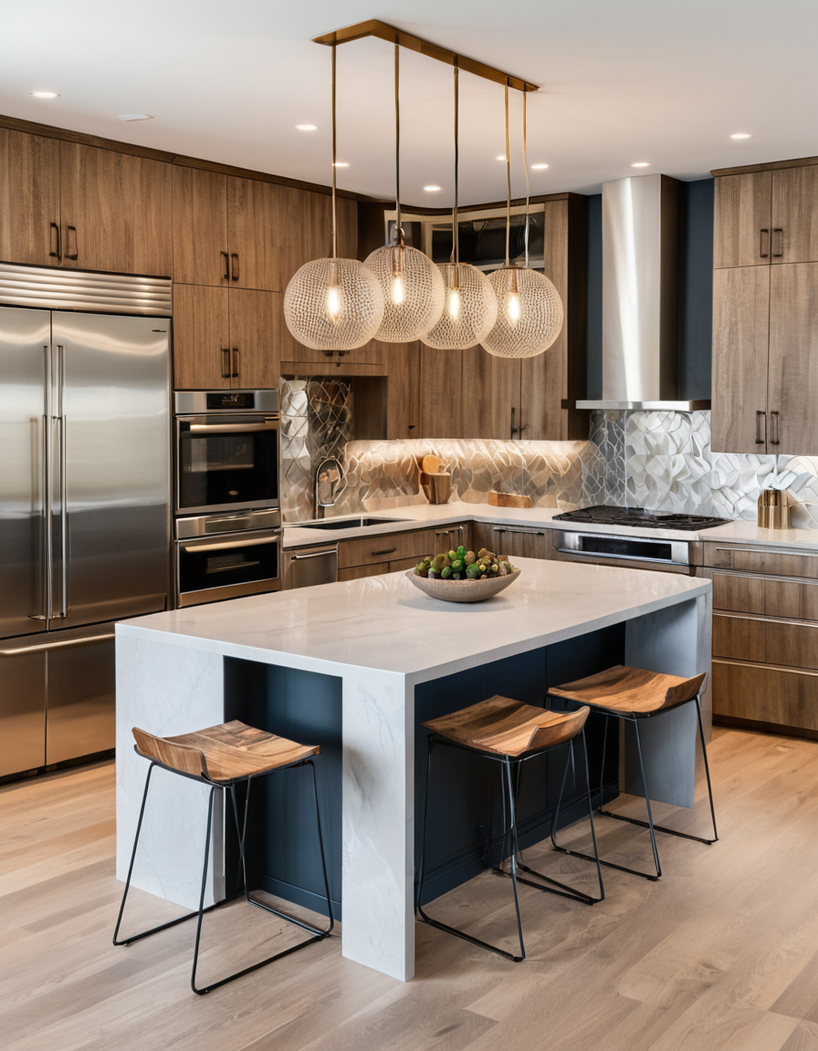 Shaped kitchen elements are the ones that can stir your imagination and creativity in your kitchen. Use geometric patterns for a backsplash, countertop, or cabinetry to produce something appealing and connected. Furniture and decor with unique forms can also bring to the appearance of your kitchen a different look. However, you have to find the perfect in-between with neutral tones to avoid unison from being lost.