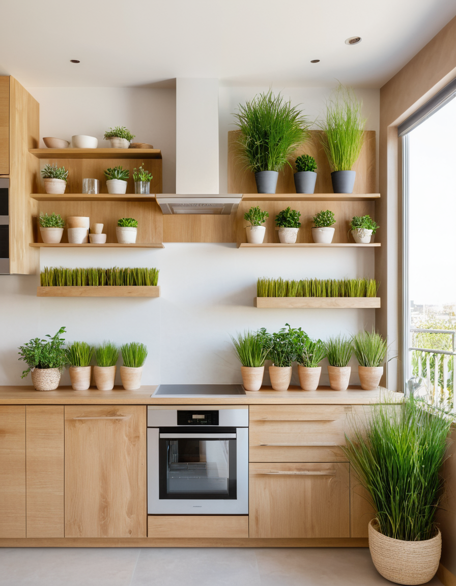 Usage of greenery in kitchen spaces can make kitchens a place boasting life of nature inside the house and that is why it is an enhancement of the overall ambiance. You can decorate your kitchen not only with pot plants but also with herb gardens, and vertical gardens. Choose those plant varieties that can grow with a limited amount of light, for instance, low-light varieties or ones with the ability to grow with little water. Making room for potted plants along with silver iodide in centered windows positively impacts the air quality of the environment leading to cleaner air which subsequently also helps create a relaxing and inviting place.
