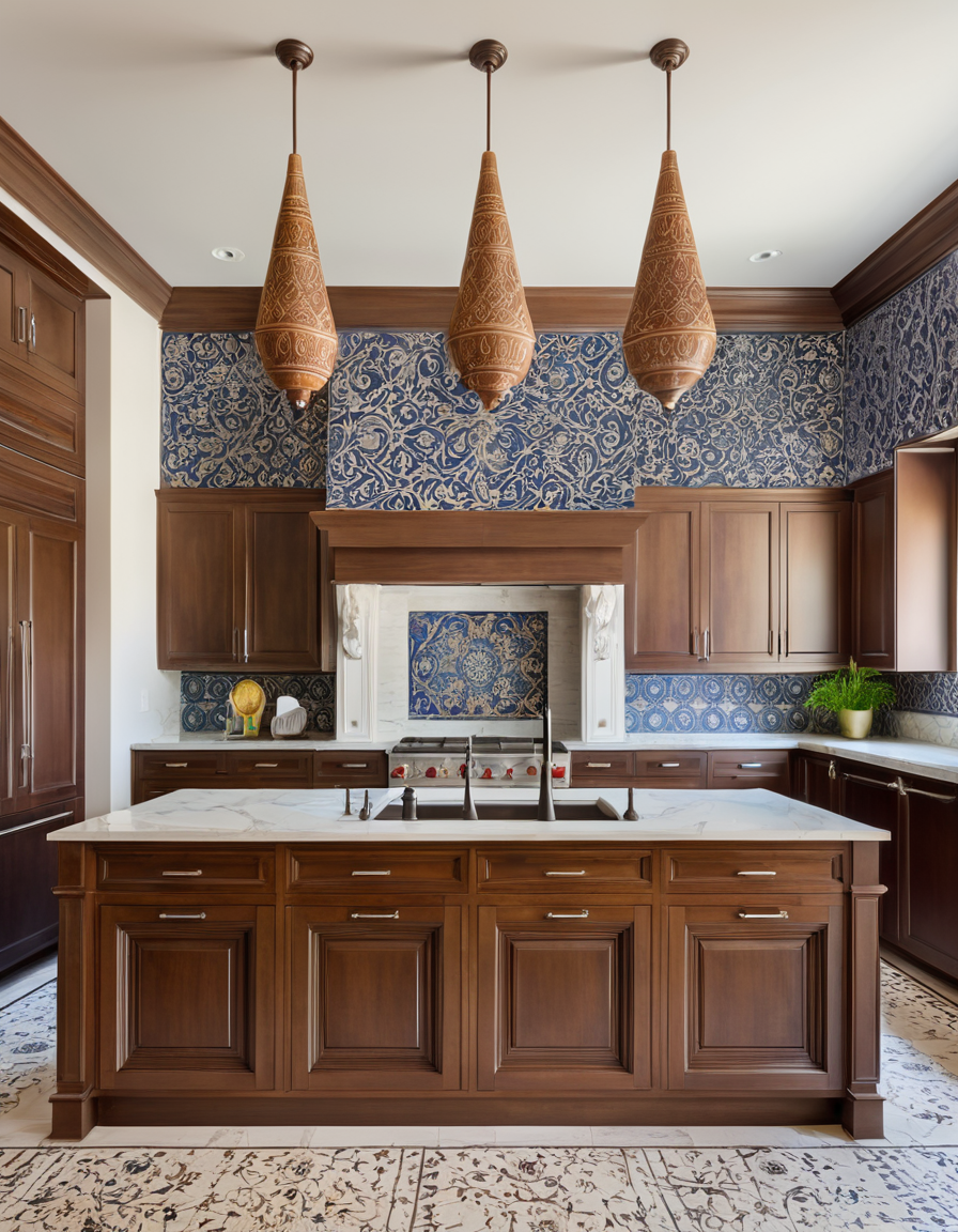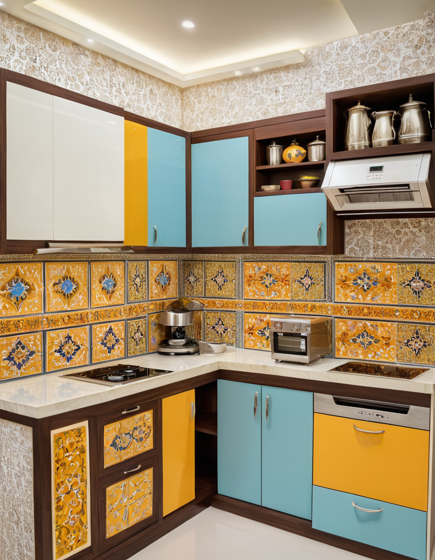 Mixing modern and traditional Indian styles provides spaces that are reminiscent of their past, but at the same time, they follow the current trends as well. In the most ordinary of images, there can be an energetically complex patterning driven by ornate patterns. A deep fusion of Indian cultural heritage and modern design can be done through customization of almost all aspects of the kitchen, from the stark colors of contemporary accents to the decoration of the walls with Indian images.