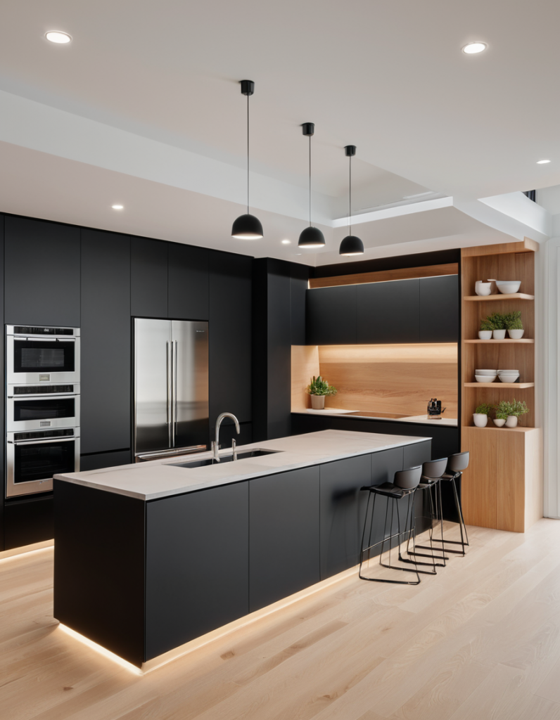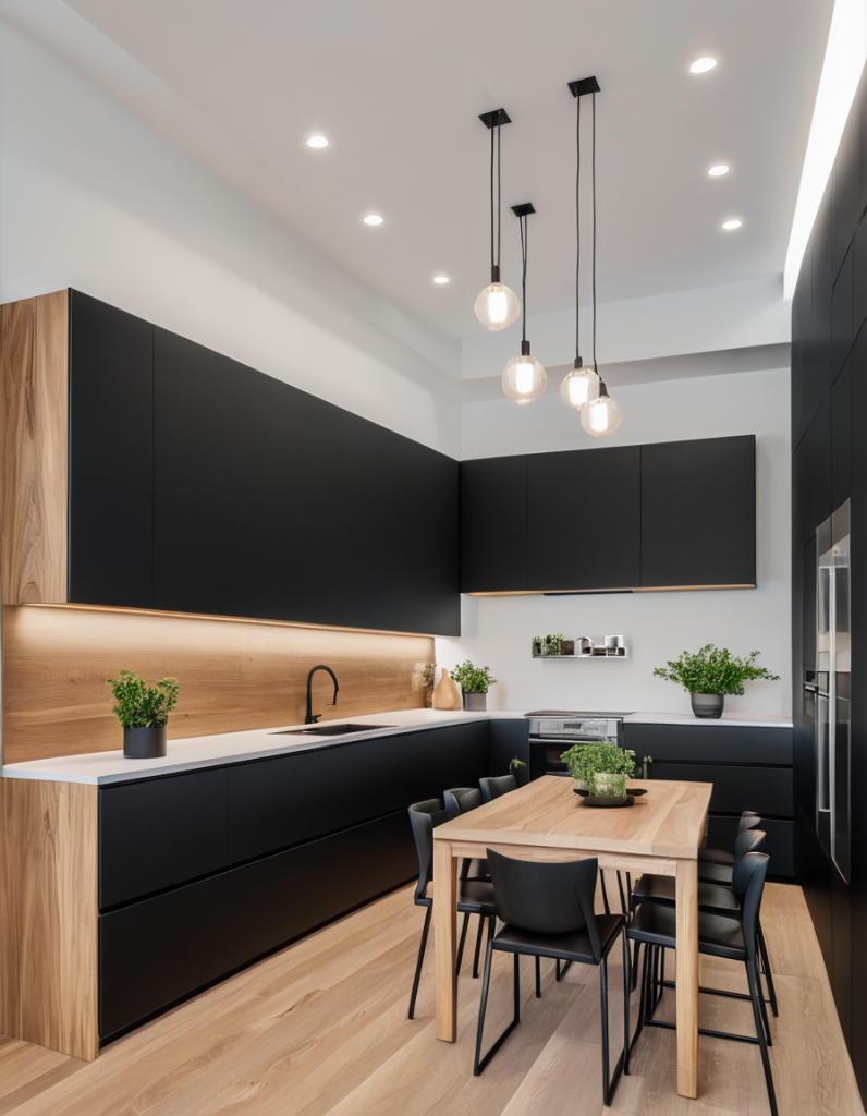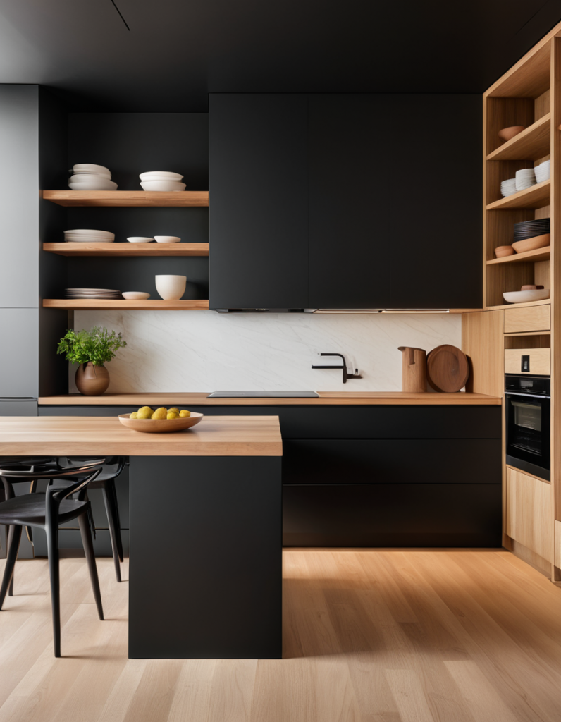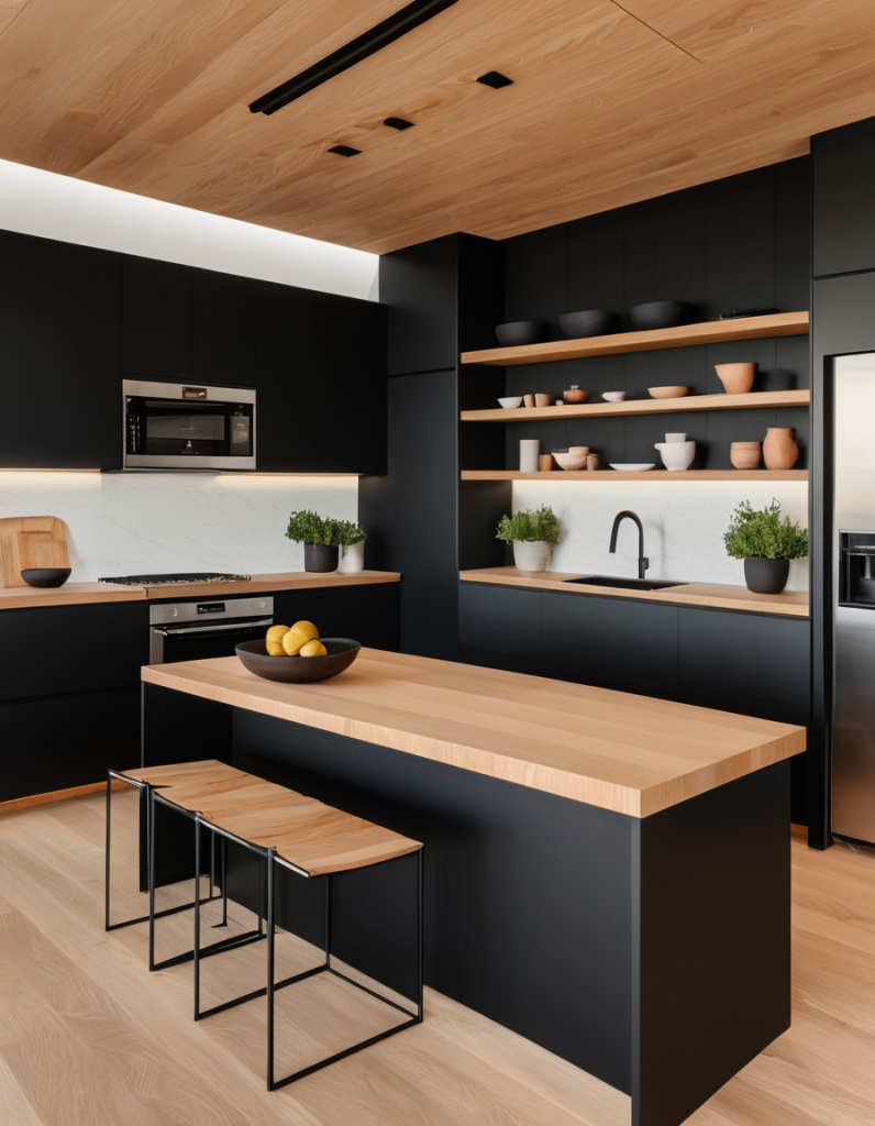A mix of black and natural wood is a renovation trend that is very popular and will continue to expand in 2025. This style comprises the robustness of black cabinetry or sanitary wares with the comfort and warmth of natural wood. The strong contrast between the two creates a modern yet welcoming mood, great for all kitchens. This color combination is perfect in various models of kitchen design, including the minimalist, modern, to the rustic or farmhouse kitchens.
