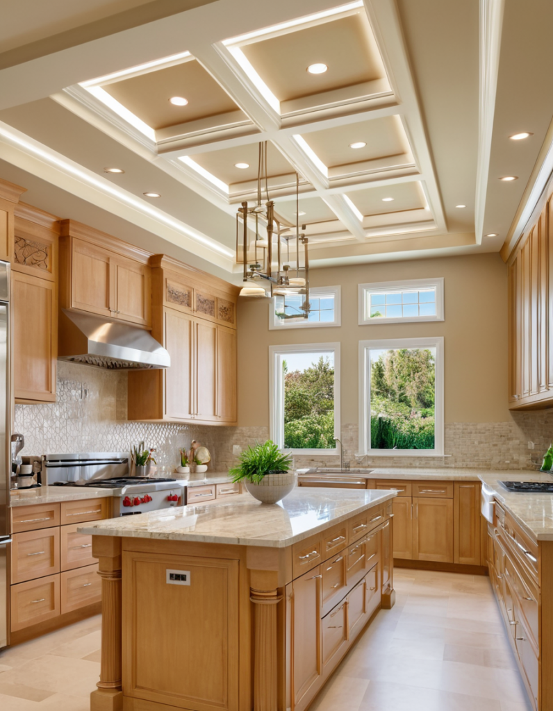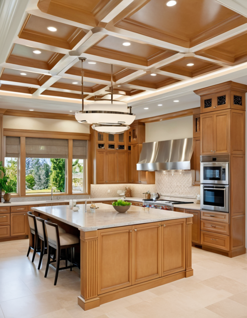 The kitchen ceiling designed well can add an elevating touch to your kitchen, giving it an extra degree of elegance or modernity. In 2025, aspects of ceiling finishing such as coffered ceilings, exposed beams, as well as paintings are progressively gaining popularity. Moreover, even a bland kitchen layout can look different and original with the use of lightings cleverly placed into the ceiling or the choice of various textures. For those desirous of a rustic or farmhouse feel, wood beams are a smart addition.