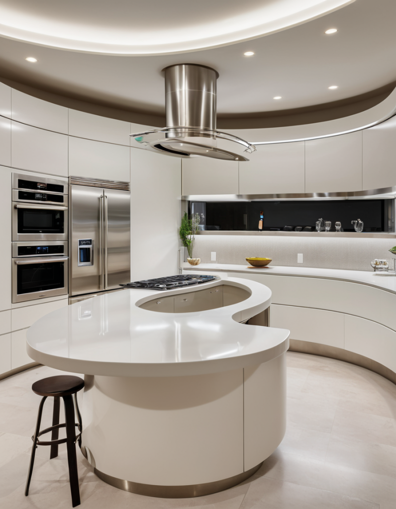 Curved furniture is the latest trend found in the home kitchen area offering a softer and more organic idea than the traditional design based straight lines. Curved islands, countertops, and even cabinetry give the space fluidity and contemporariness. The noted design proposition is of great merit both in big and small kitchens as it creates a unique design element. As they echo the rounded forms, sneaky color trick increases this exiting visually harmonious but modern and cozy environment at the same time.