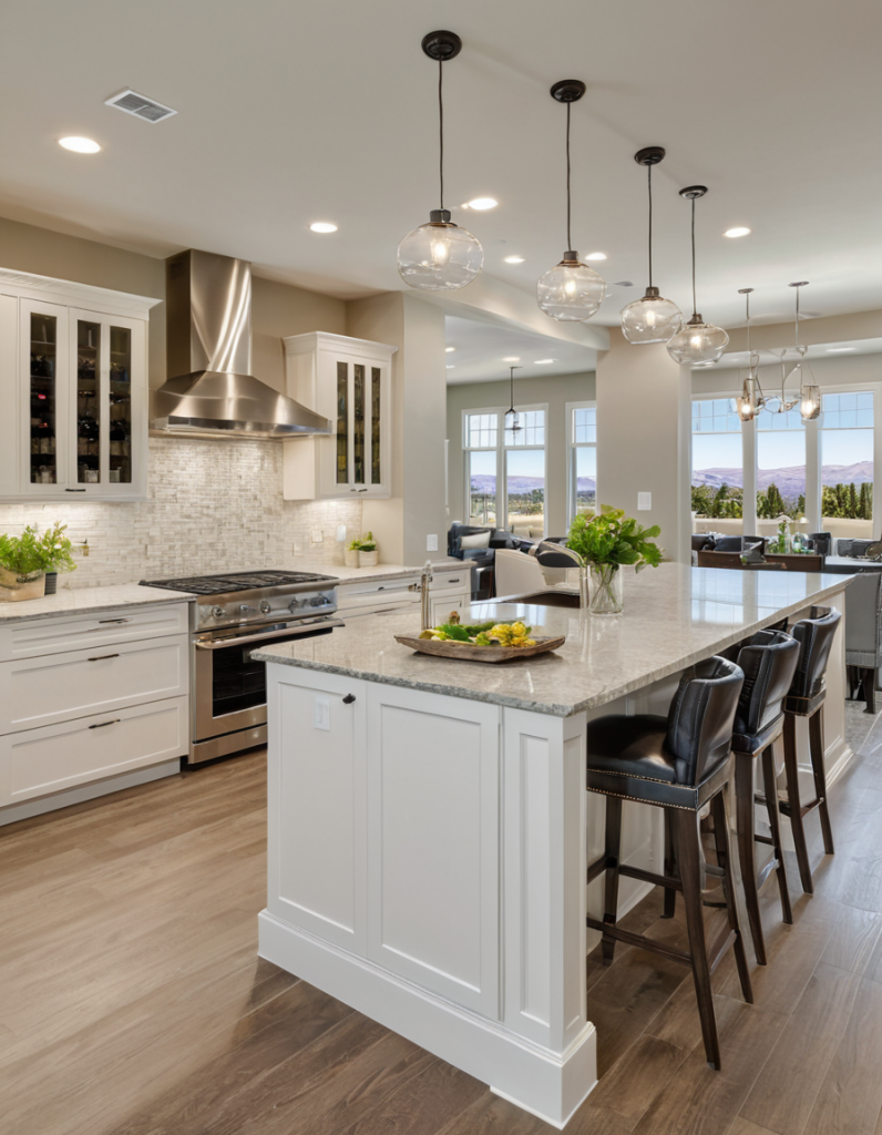 To cater to all the guests, you need a well-balanced kitchen design, which incorporates style and functionality. The layout has to be very well planned indeed for it to function efficiently. To be able to cook and cater to the guests at the same time, we need a large counter for serving and food prep. 2025 sees open-concept kitchens as the most desirable, as they enable an easy transition between cooking, dining, and socializing spaces. A number of essential elements need to be incorporated such as a big kitchen island with bar seating, built-in wine coolers, and smart appliances.