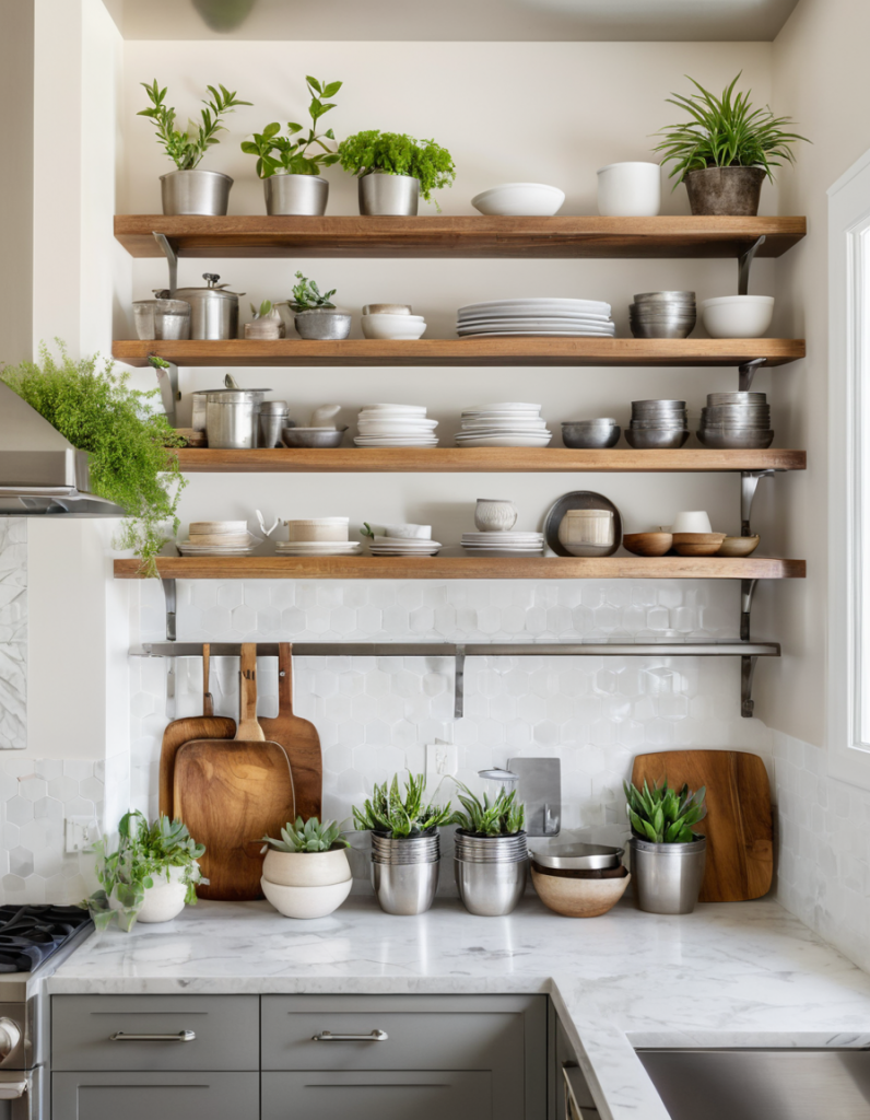 Even though open shelving is a continuing trend in kitchen remodels for the 2025 season, it stands out as an element that not only alters the aesthetics of the space but also provides usable storage units. An open shelf design not only makes kitchens feel larger and more open, but it also allows homeowners to show off dishware and decorative things. The shelves are mostly super-suitable for whatever plan of action you choose, whether it be a sleek metal shelving unit in a contemporary kitchen or using items from a bygone era such as the reclaimed wood shelves typically found in rustic or farmhouse kitchens.