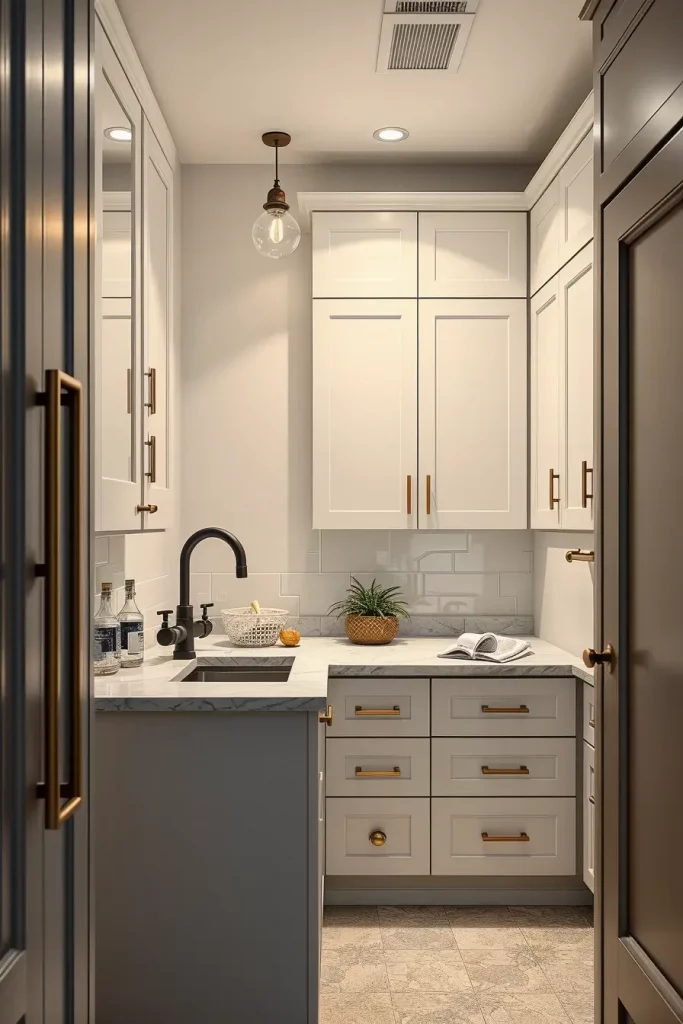 In my case, it is about sophistication and convenience. I also combine pull-out ironing boards and fold up hampers with soft close drawers that can give a neat and clean appearance. Impartial shades; ivory, charcoal and dull beige make a very appealing, and classic look.