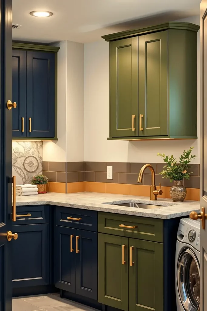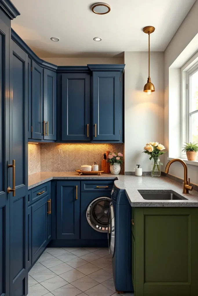 One of the most stimulating things in the design of laundry rooms in 2026 are color. The trends adopted this year incorporate the use of bold colors; deep navy, olive green, terracotta, and even matte black to help come up with striking but elegant interiors. I adore the use of these colors on wall, backsplash and cabinets to add personality and warmth.