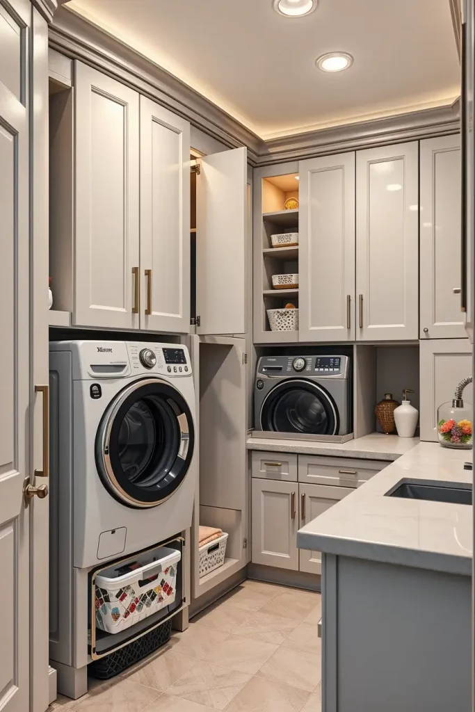 Space-Saving Laundry Cabinets And Hidden Storage Solutions