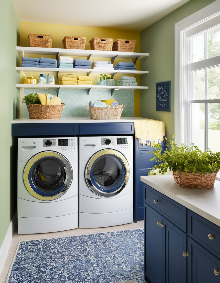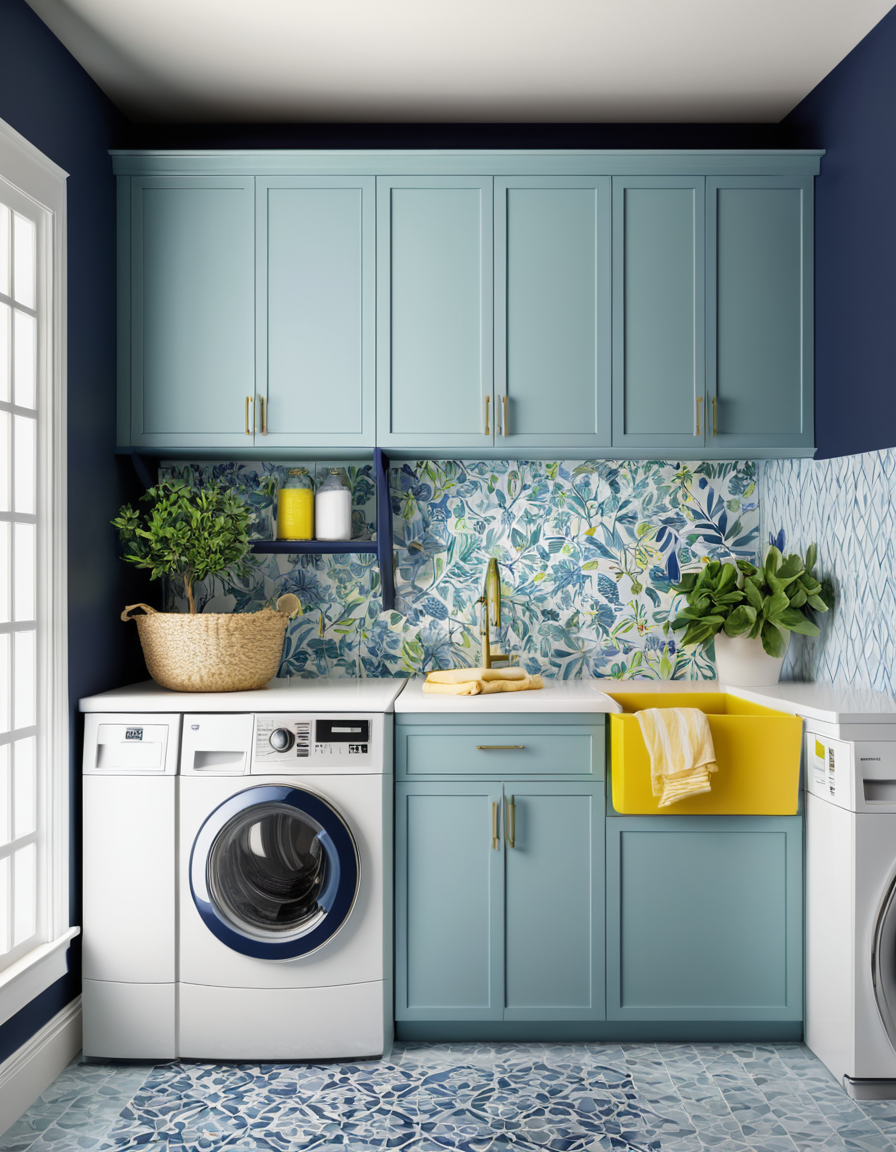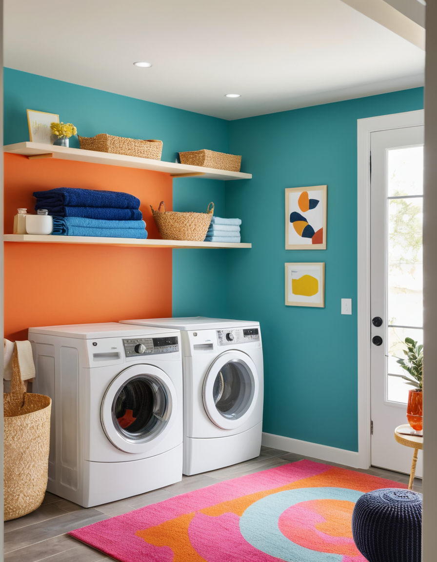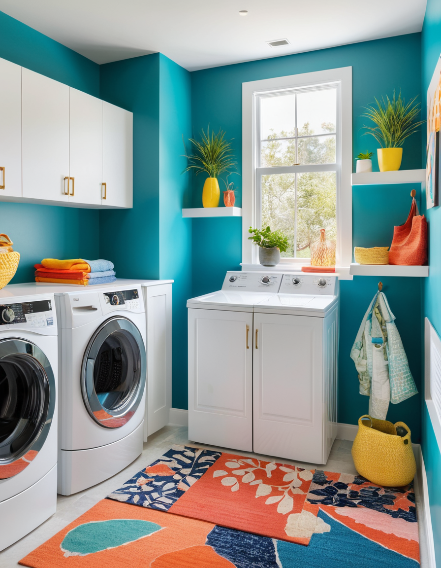 By adding color to your laundry room, you can make it look fresh, not boring, in an instance. One way to achieve this is by painting one of the walls in a shade like a deep navy blue or a bright color like emerald green. This will give the room a new layer by creating a wall that stands out. To achieve a softer look, for example, you could use art that is colorful, rugs that are patterned, or bins for storage that are painted in bright colors. The less inopportune way is to choose appliances or fixtures in bold colors that stand out.