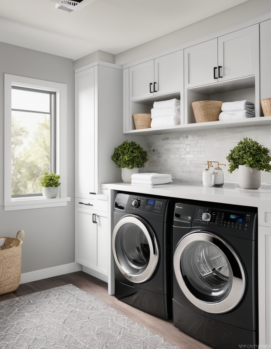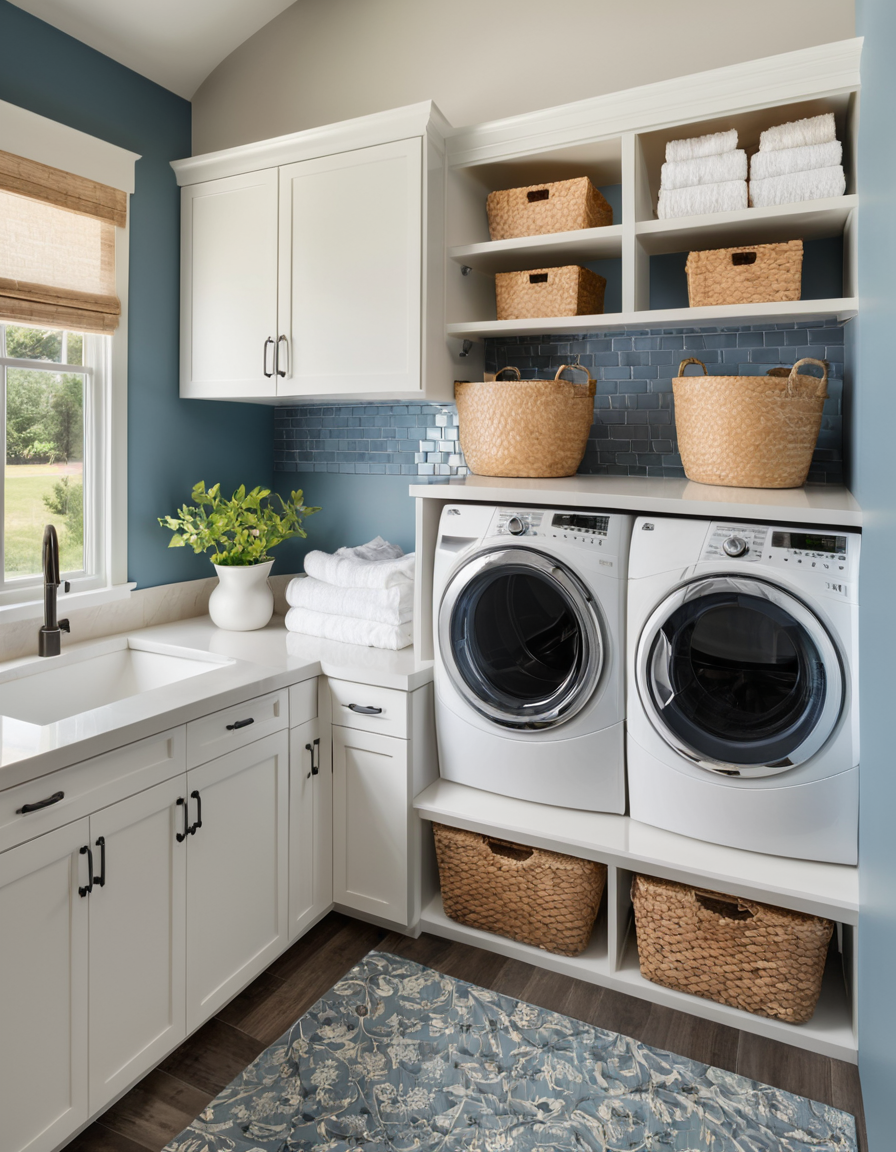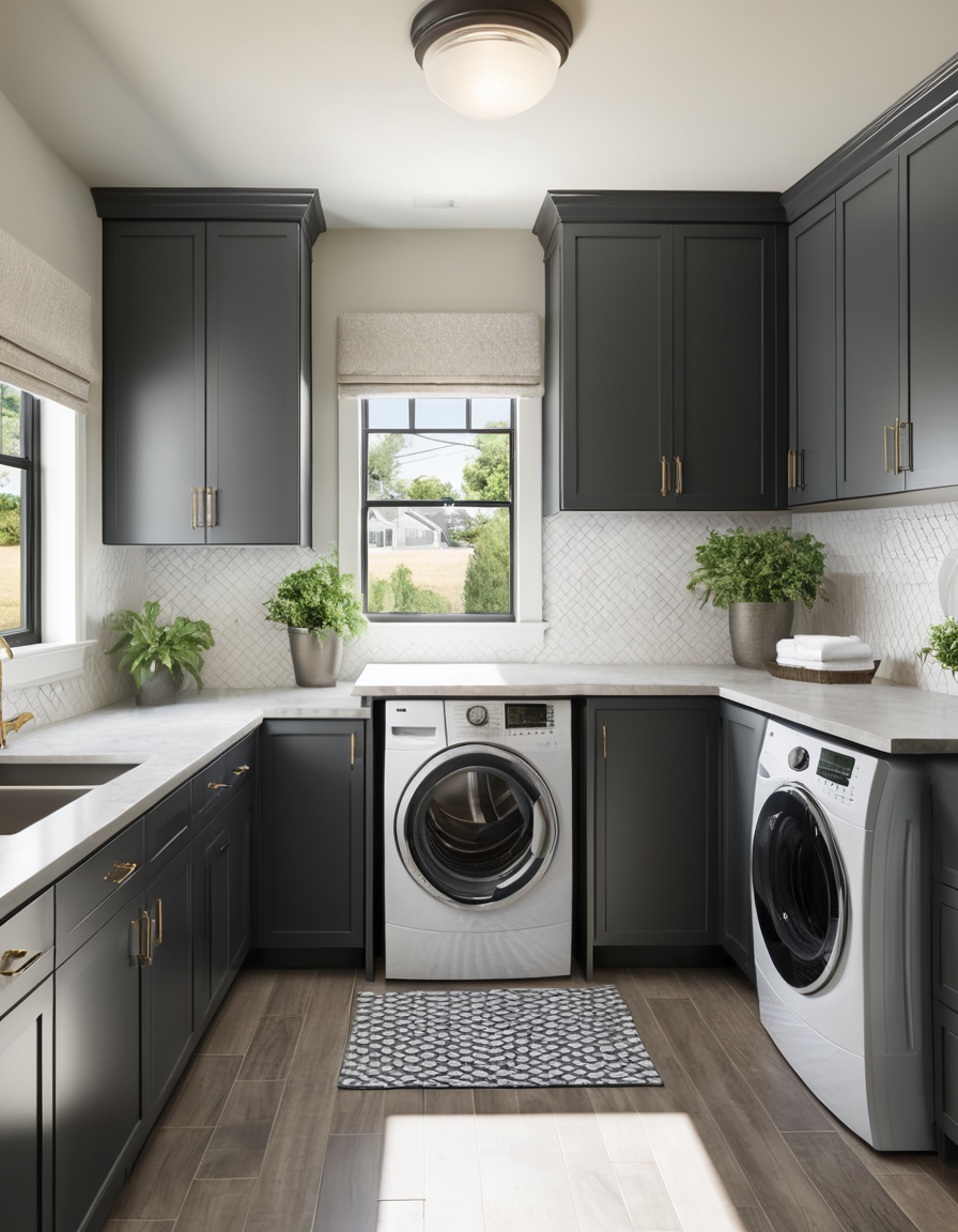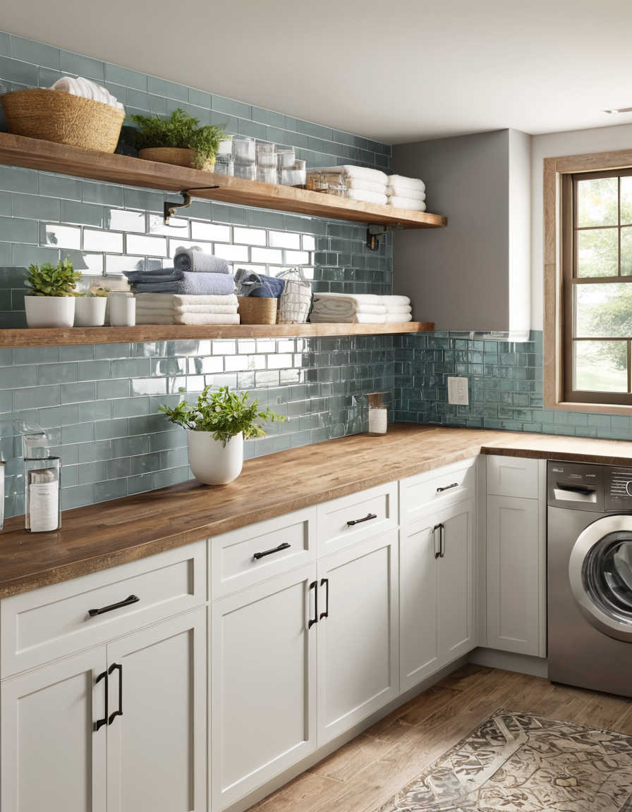 A beautiful backsplash makes the laundry room look more stylish and protects the walls from the spills and splashes. Subway tiles are the best choice for an introductory level that permits you to create a slick, timeless look. Be inventive and prefer glass or metallic finishes in the more modern ones, these styles add some flair. Whether you like a vintage feel, you may go for a brick or the Tiktok trend of the reclaimed wood backsplash. A right backsplash would be the main center of the laundry room and bring together the color patterns and overall concept.