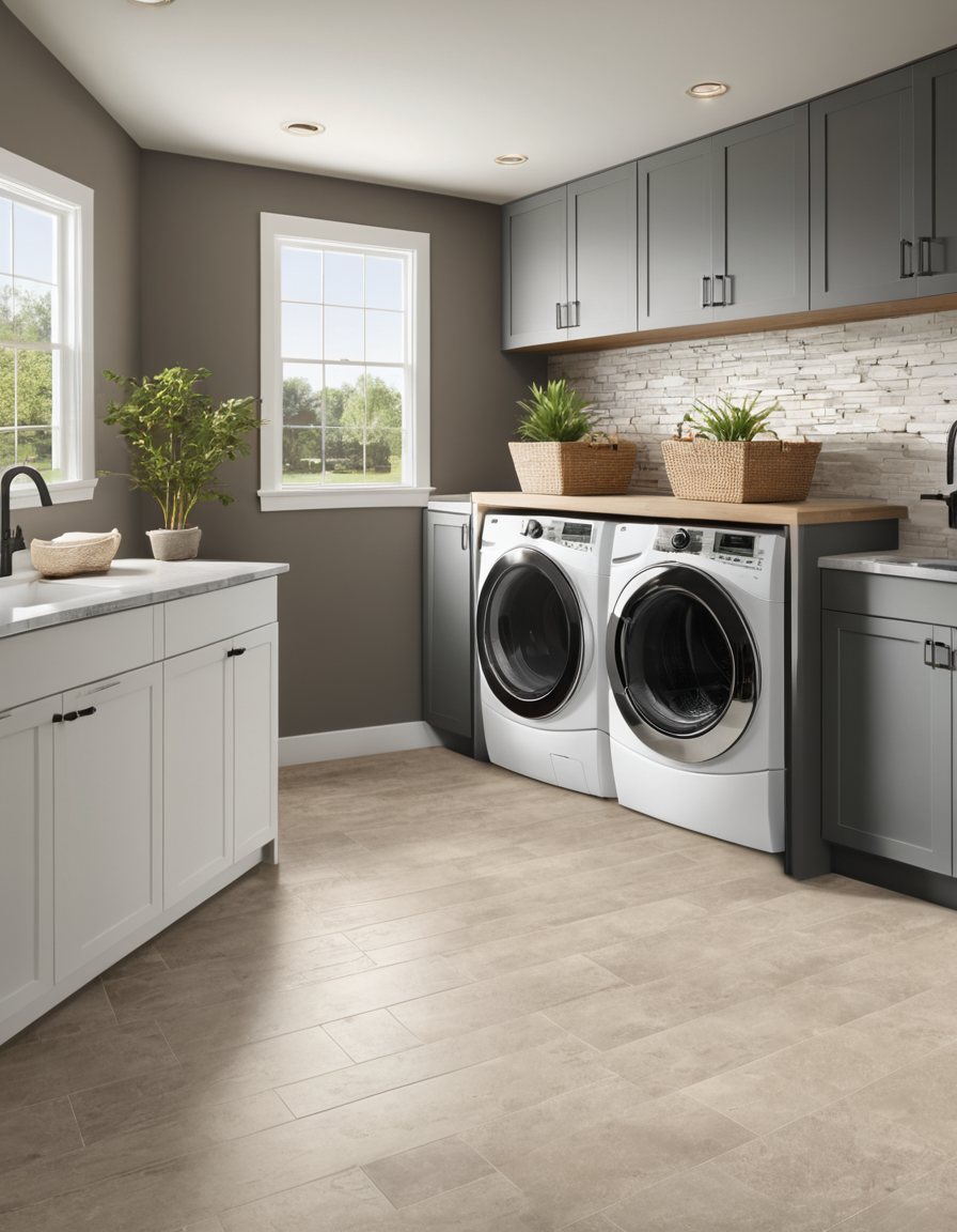 A significant factor for the strength and aesthetics of your laundry room is the correctly chosen floor. The porcelain or ceramic floor material is widely known for its water repellent properties and the ease of cleaning. Vinyl flooring is the second option, which is a long-lasting solution. Apart from these, it even mimics the imitation of wood or stone and is also waterproof and is affordable for the budget, besides other benefits. A preferable option includes using sealed concrete or natural stone, which offer good durability and look modern.