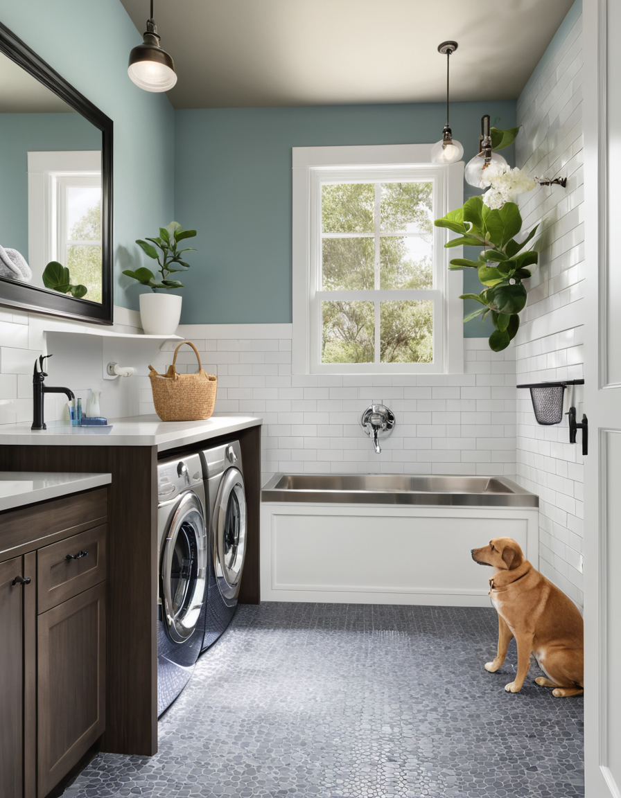 For pet owners, pet washing station features in the laundry room can transform the house. Typically, the station comes with a raised tub or a shower area, which makes it comfortable for you to wash pets without straining your back. Moreover, a handheld showerhead and non-slip flooring can be added to ensure safety and easy use. The side for shampoos, towels, and tools, which are used for grooming pets, should be positioned in a distance-fixed place. In brief, a pet washing station is not only used for washing dogs but also it keeps the other parts of a house clean by minimizing the mess in that area.