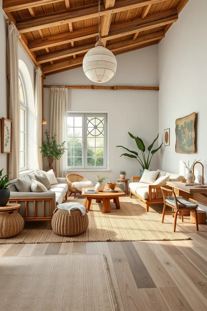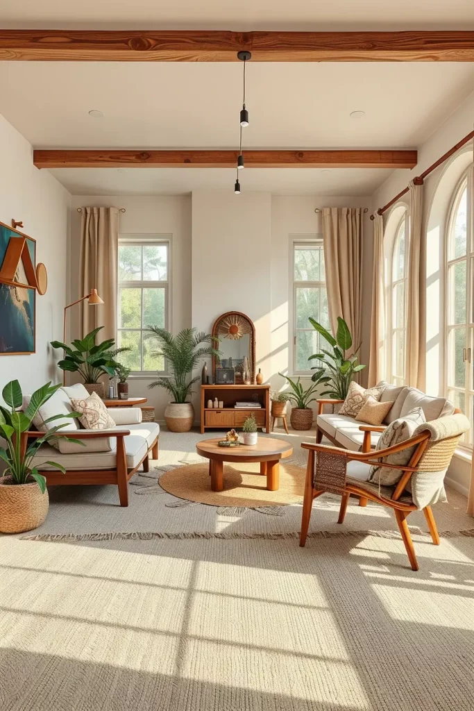 To bring this thought a step further, I would add macrame wall adornment, or textured throw blankets, sparingly, so as to have a harmonious layer effect.
