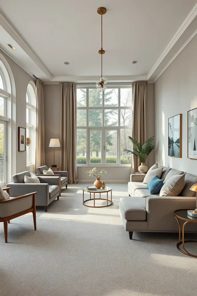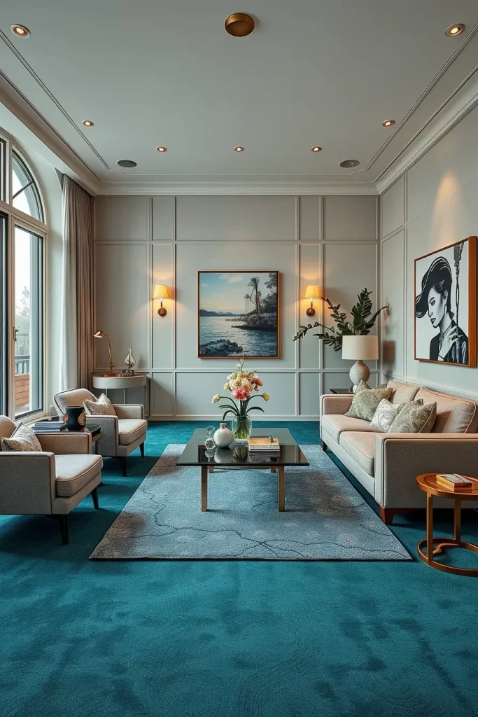 I tend to use structured sofas, sleek coffee tables, metal accent, and minimalist furniture to lift the luxurious appearance to sustain the low-pile carpet. These pieces of furniture leave the room aesthetically sharp and made the smooth texture of the carpet shine. I use also the slim lighting fixtures and broad format artwork to promote the sleek language of design.