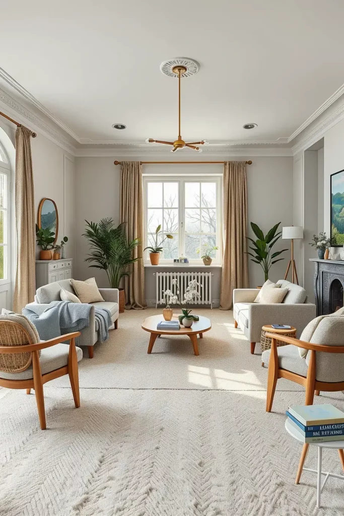 To equip such spaces, I am inclined towards light wood coffee tables, simple neutral sofas, soft textiles such as cotton throws. Scandinavian design is also more about being practical and comfortable such that all the furniture serves to reinforce the minimalist nature of the carpet. I also adore the inclusion of greenery, which is also a great combination with Scandinavian carpets and helps to create a fresh touch in the room.