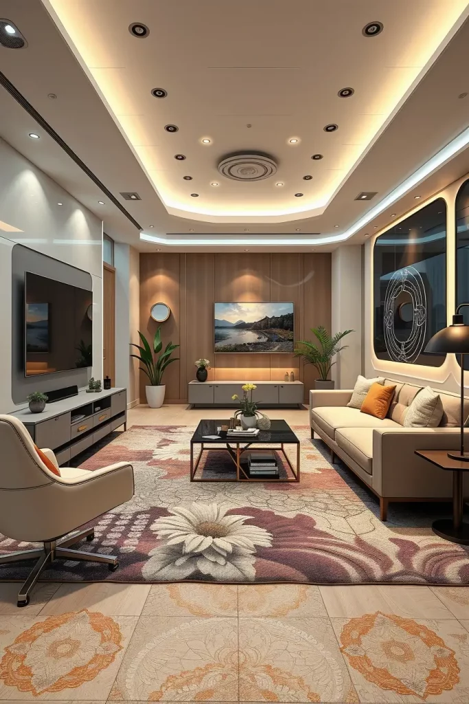 Had I a say in it I would consider including voice-controlled lighting or a smart coffee table to complete the technological theme of the living room.