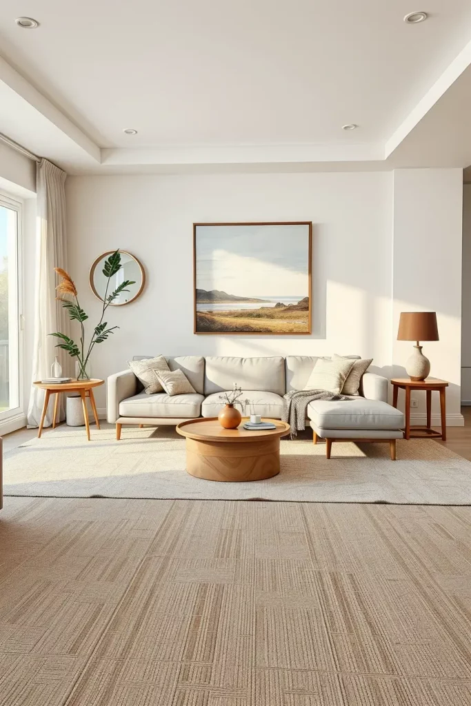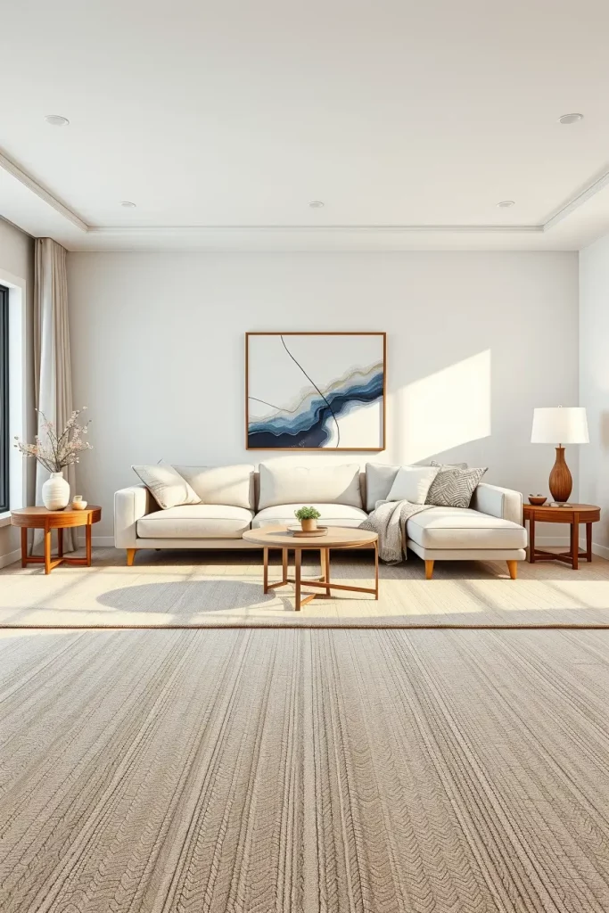 To match with this kind of carpet I prefer to combine it with sofas of neutral colors, matte-finished furniture made of wood and plain metal decorations. Linen curtains or boucle throws are soft and low-contrast fabrics that add to the calming palette in general. A neutral rug particularly suits well where the walls and other pieces are also of the same tonal direction, forming an agreeable overlay that is sophisticated and relaxed.