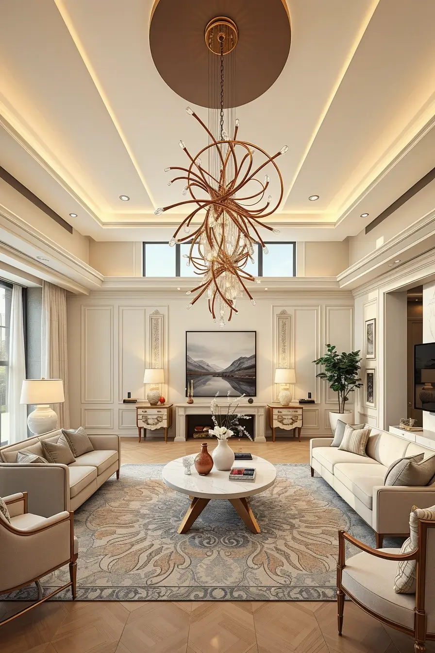I would suggest coffered ceilings in the case of sophistication or floating gypsum panels in the case of futuristic look, in the planning. Incorporation of LED perimeter lighting adds a homey touch and makes the structure prominent. The designs are used to complement any type of interior design (minimalist or luxury modern) but retain the appearance of the interior.