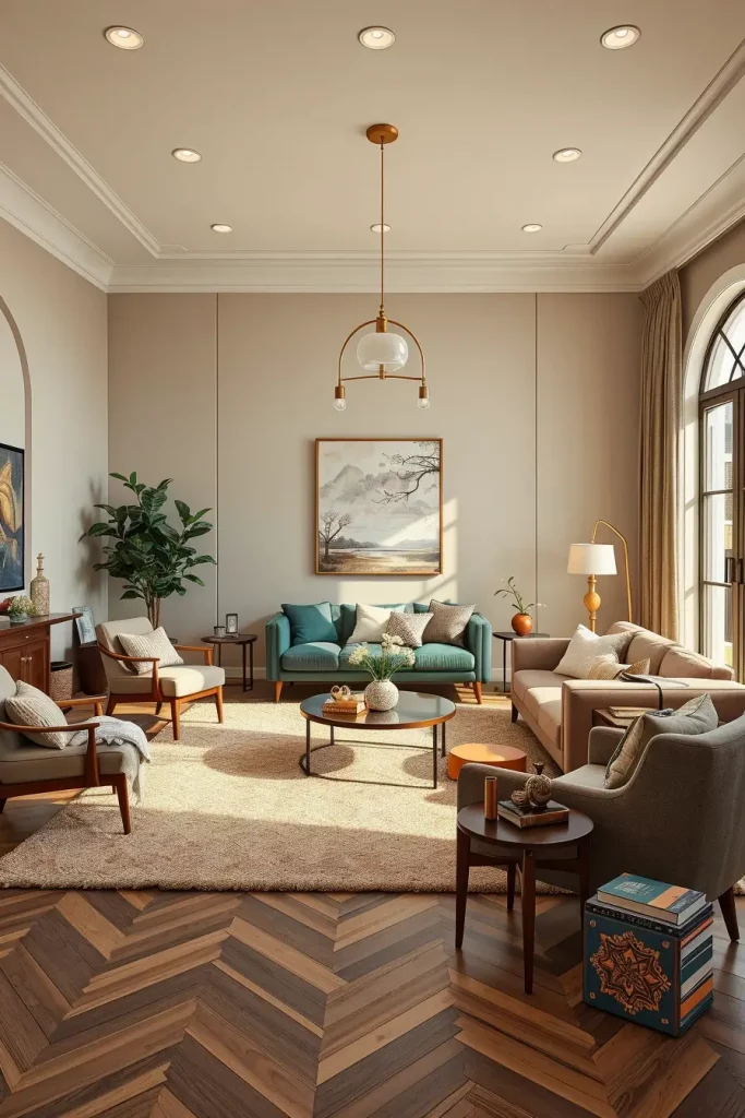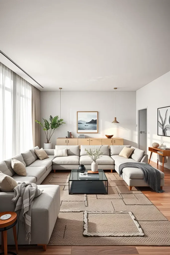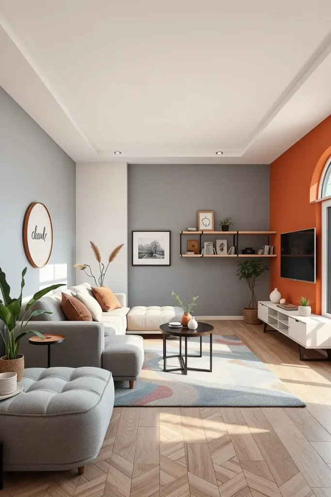In creating such spaces, I also depend on a palette of neutral colors with accent colors that attract attention to the centrepieces of the room such as the sofa, the wall artworks or bookshelves. As an example, a plain grey wall can be paired with a section of terracotta accent to create a comfortable reading corner, and an accentuating rug to unite the two visually. The layout of the furniture also contributes significantly to this- sectional couch with bare shelving and matching lightings stands out as a whole unit.