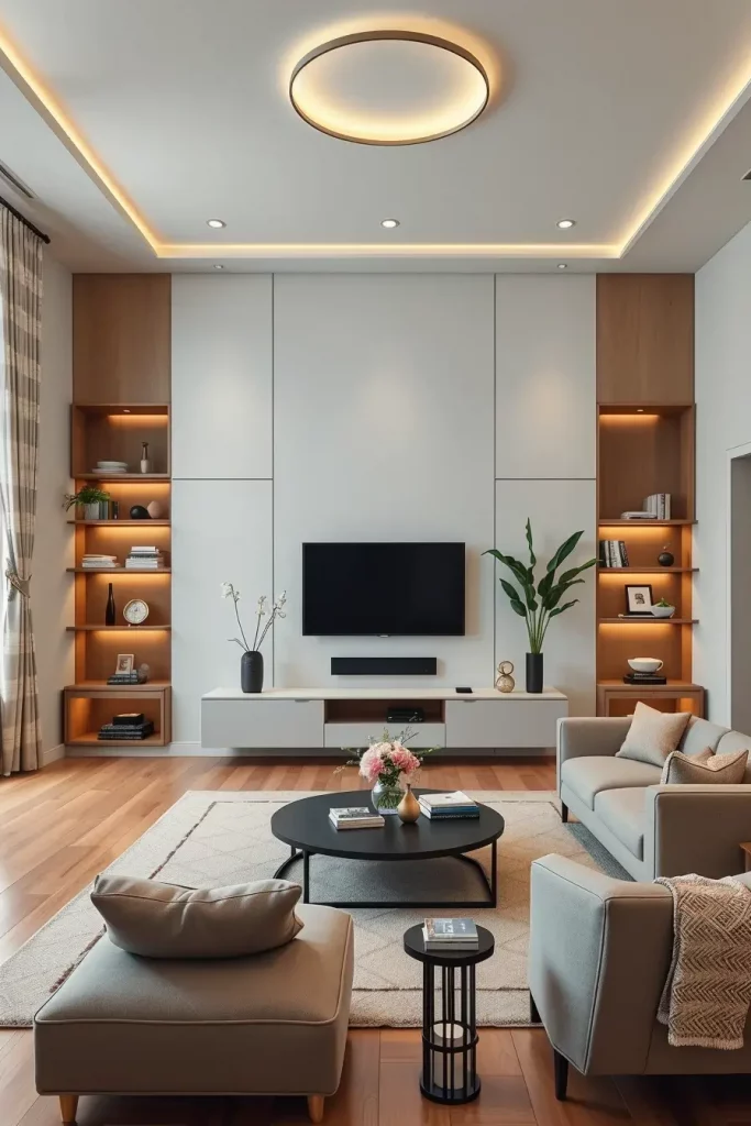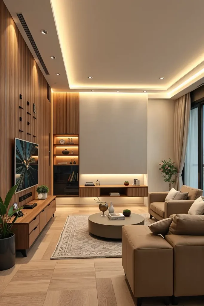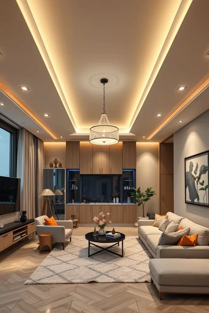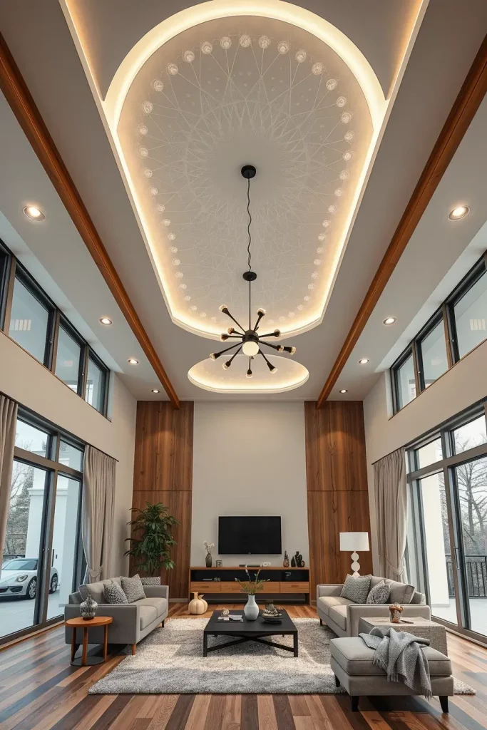 I would suggest coffered ceilings in the case of sophistication or floating gypsum panels in the case of futuristic look, in the planning. Incorporation of LED perimeter lighting adds a homey touch and makes the structure prominent. The designs are used to complement any type of interior design (minimalist or luxury modern) but retain the appearance of the interior.