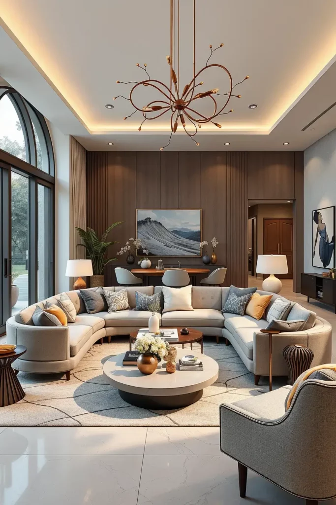 The ideas behind the remodelling of the living room in 2026 are taking the form of curved lines, which provide a touch of comfort and flow that many rectangular furniture lacks. Curved sofas, round coffee tables, and shaped chairs like organic forms are some of the things which make the room seem more softer and welcoming.