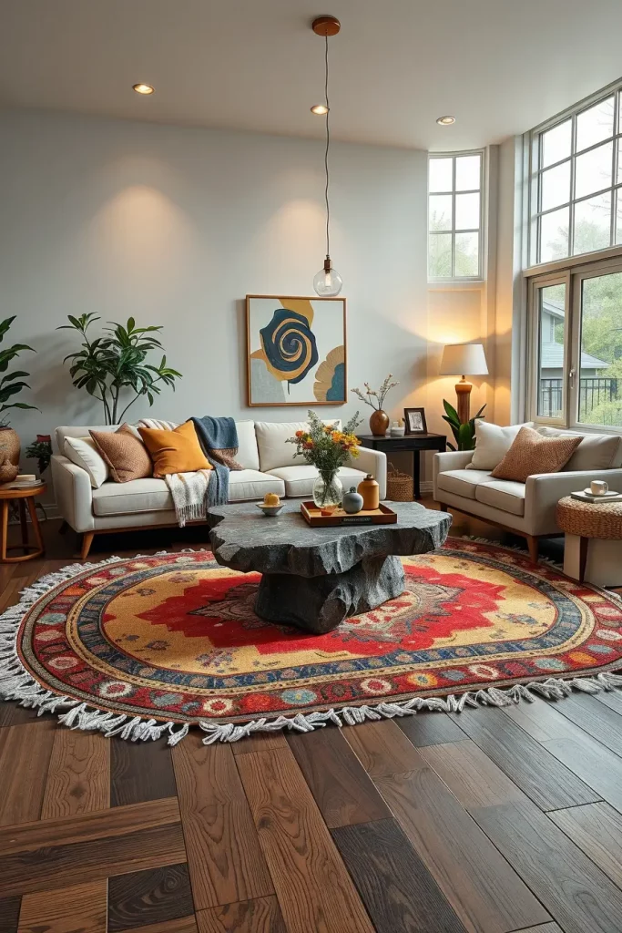 I have been taught that any remodel starts at the bottom. Accent rugs and textured flooring will be a central theme in the 2026 living room remodel ideas and it serves to mark the zones and bring comfort.