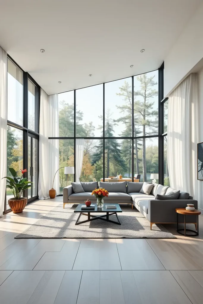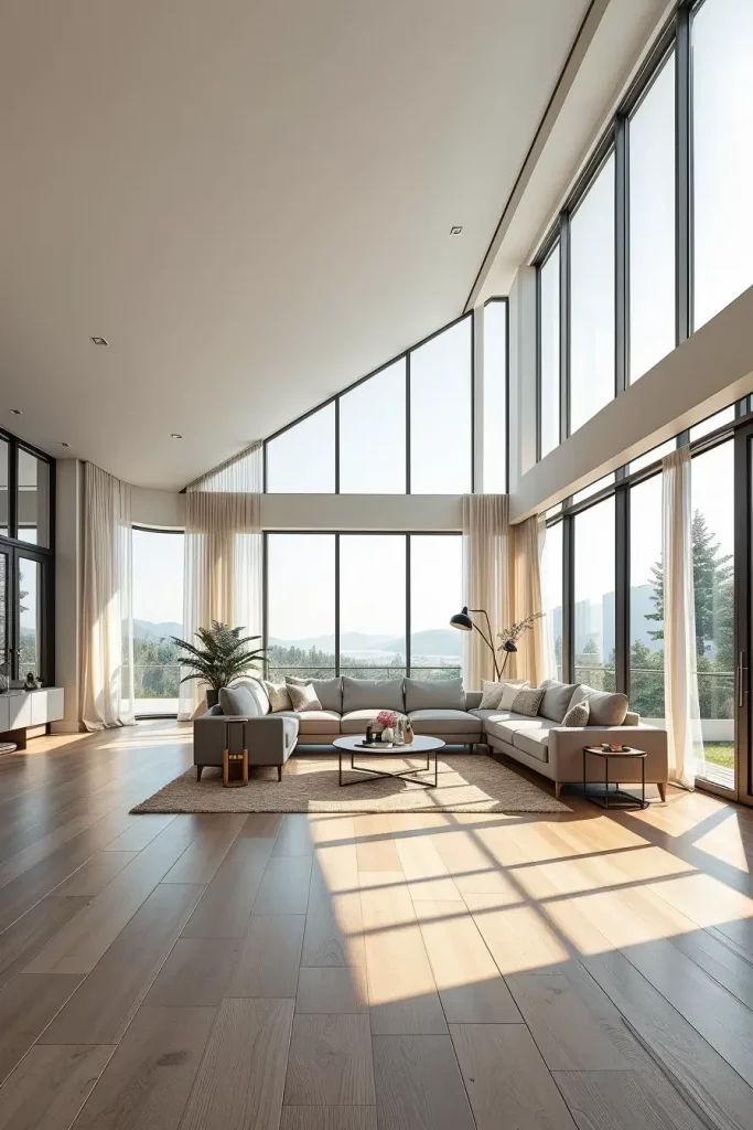In designing such spaces, I incorporate floor to ceiling windows and smart shading systems, as well as minimalistic furniture that does not obstruct the view. This design is well matched by a sectional that is low-profile, a glossy coffee table and soft neutral sheer curtains. The trick is to allow the light to determine the mood all day long without making the space too functional and comfortable.